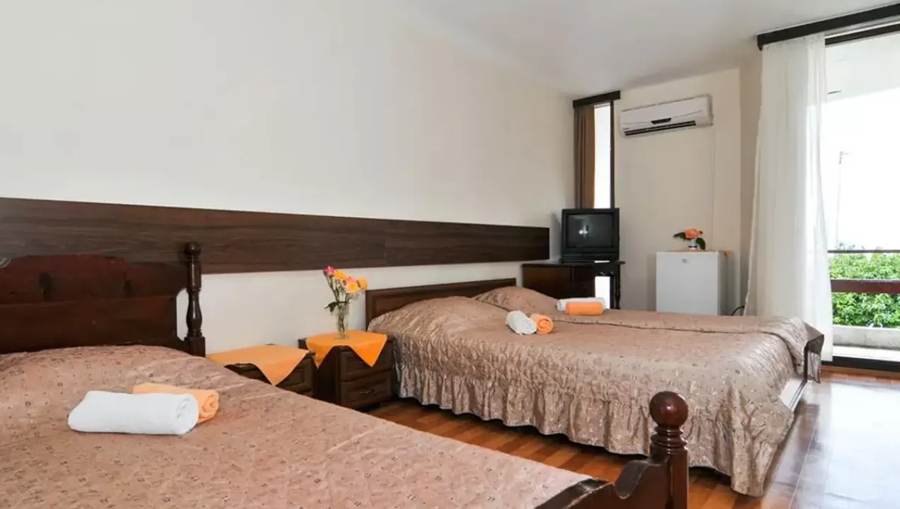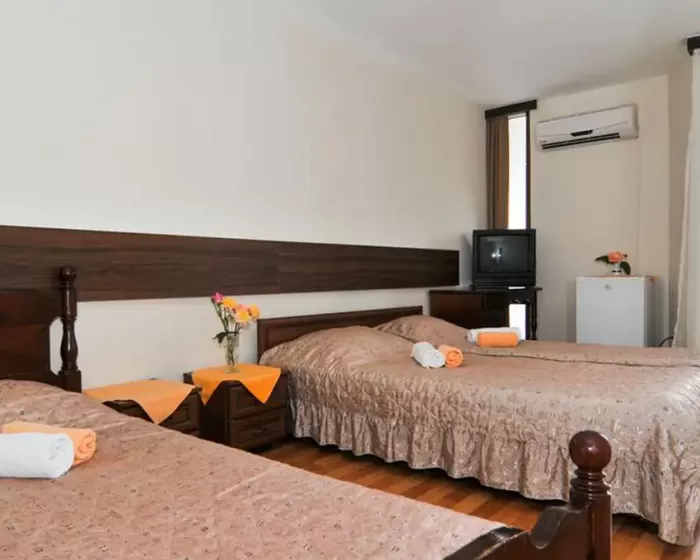smeštaj je u dvokrevetnim i trokrevetnim sobama sa kupatilom, jedan broj soba je klimatizovan.