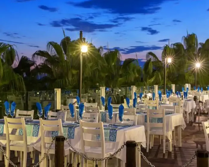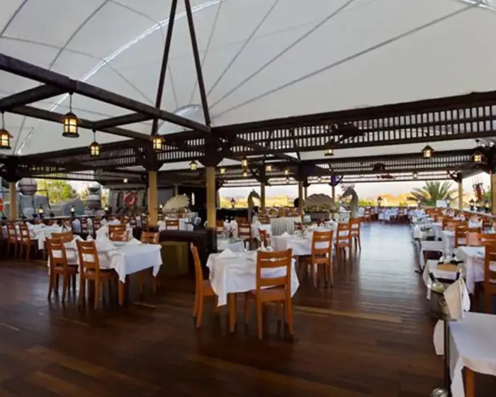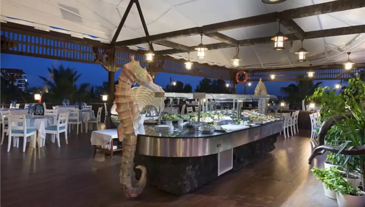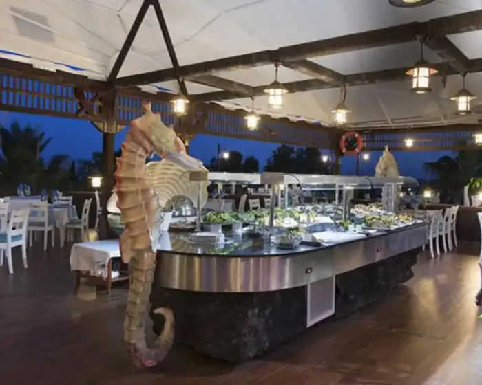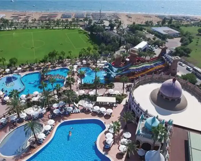 recepcija, osnovni restoran, dijetalni meni, vegetarijanski meni, 5 a la carte restorana (kineski, riblji, turski, meksički i italijanski-jednom u toku boravka korišćenje usluge jednog restorana besplatno uz rezervaciju), 7 barova, 2 spoljašnja bazena, unutrašnji bazen, akvapark sa 6 vodenih tobogana, 3 profesionalna fudbalska terena, SPA centar, 5 sala za konferenciju (20-560 osoba), sauna, tursko kupatilo, jacuzzi, aerobik, akvabik, odbojka na plaži, košarka, mini golf, stoni tenis, animacioni program, diskoteka, muzika uživo, dečiji bazen, dečiji meni, mini klub (4-11.99 godina); uz doplatu: masaža, motorni sportovi na vodi, internet kafe, bilijar, kuglanje, SPA centar, osvetljenje tensikih terena (podloga-šljaka)