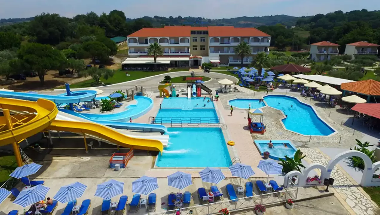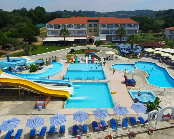 recepcija, loby bar, restoran, bar pored bazena, otvoreni bazen, dečiji bazen, ležaljke i suncobrani pored bazena, aqua park za decu (lazy river, tobogani, dečiji bazeni, jacuzzi, etc), uredjeno dvorište, dečije igralište, animacija za decu, parking
