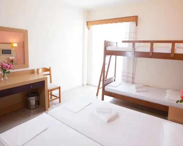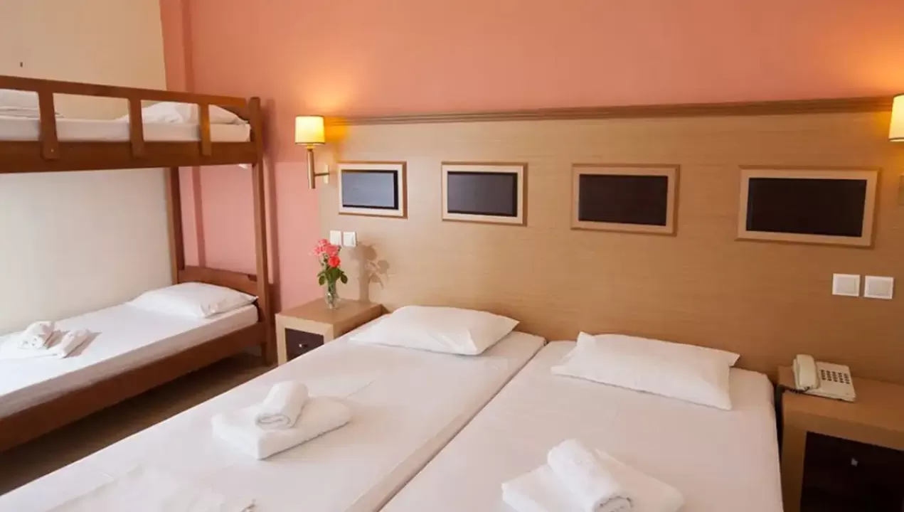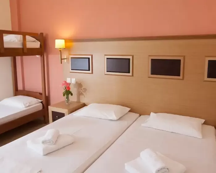 Deca do 1.99 godina borave besplatno, bebi-krevetac najaviti blagovremeno.Standard soba: su površine oko 20m², sadrže bračni ležaj, maksimalno mogu da prime dve odrasle osobeTrokrevetna soba: tri standardna ležaja max za tri odrasle osobe.Family soba: sobe malo veće kvadrature, mogu da ugoste do maksimalno dve odrasle osobe i dva deteta do 11.99 god. Sastoje se od bračnog kreveta ili spojena dva singl kreveta i jednog standarnog ležaja iz kog se izvlači fioka-krevet za dete do 11.99 godina, ili se sastoje od bračnog ležaja i kreveta na sprat za decu do 11.99 godina.