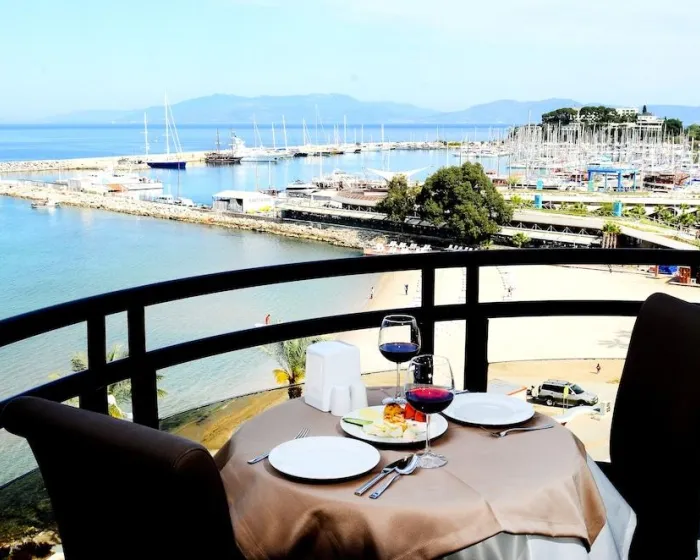 Hotel se nalazi direktno pored plaže i oko 4 km od centra grada sa raznim prodavnicama, restoranima, barovima i noćnim klubovima. Aerodrom Izmir udaljen je 90 km od hotela, vožnja lokalnim prevozom traje oko sat vremena.