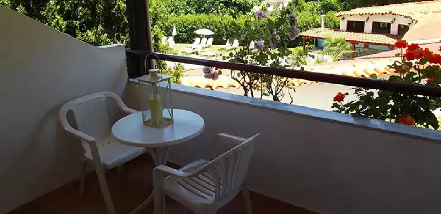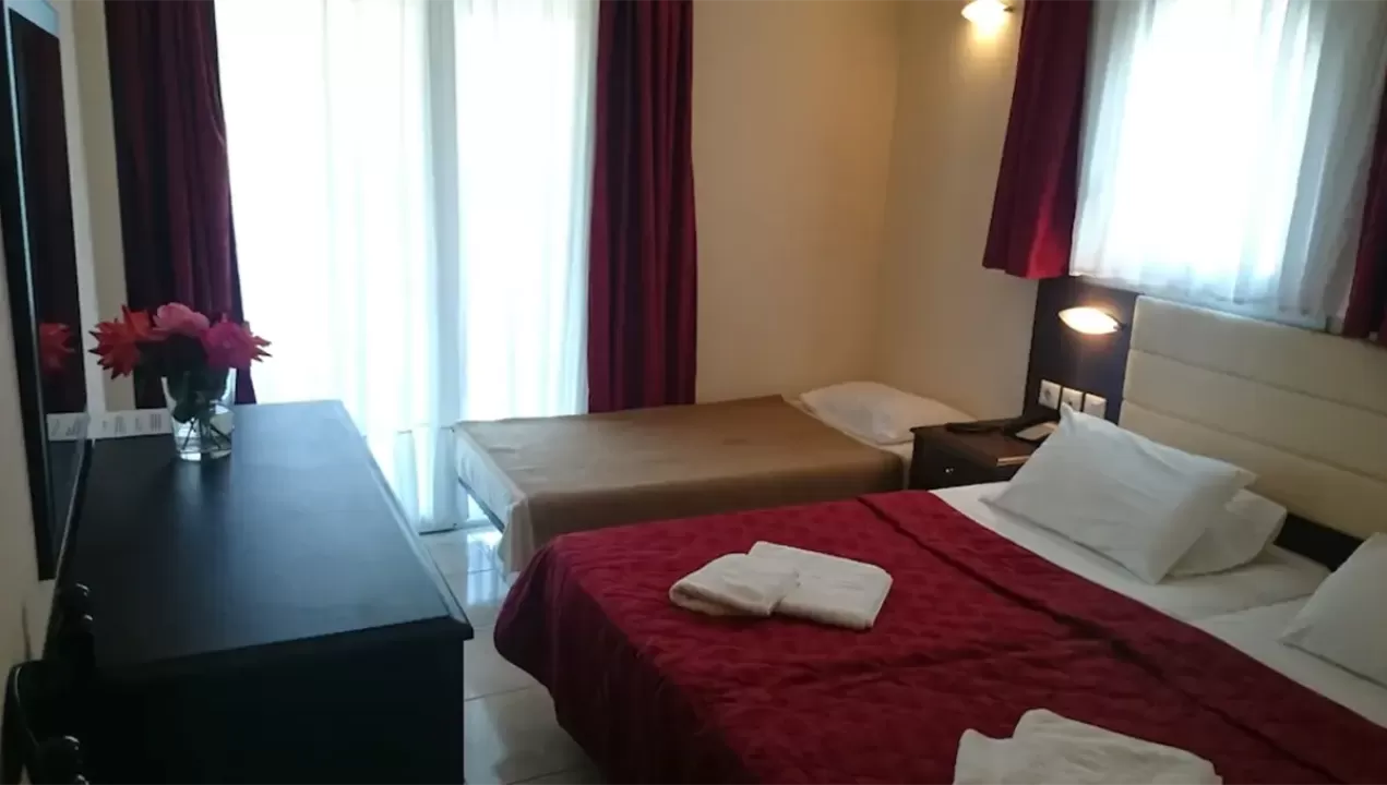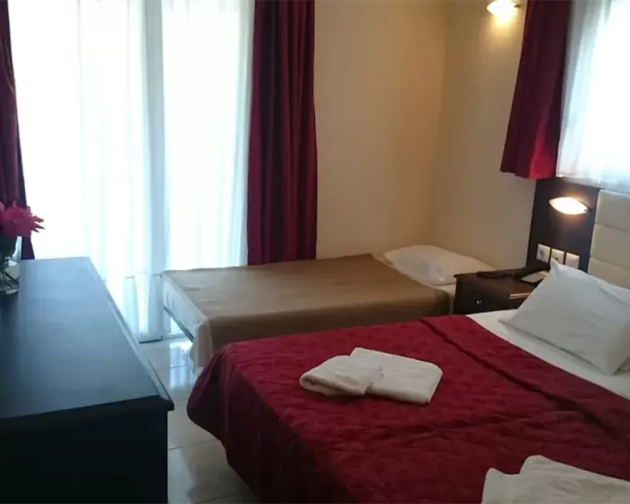 Ukupno 45 soba: standard (~22m²), trokrevetna & četvorokrevetna (family) (~25 m²). U sobama: klima, televizor, telefon, mini frižider, tuš, fen, balkon/terasa.
