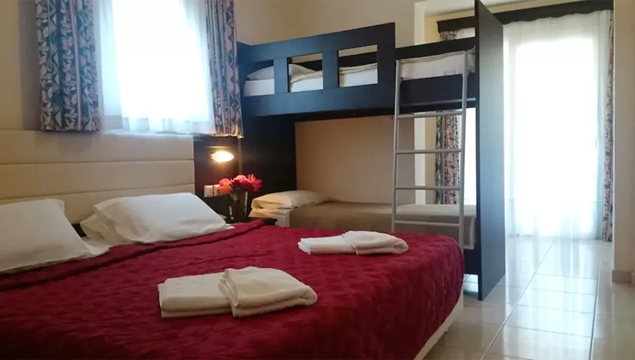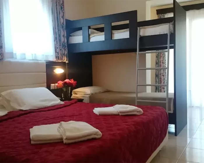 četvorokrevetna soba (family): 2 kreveta i krevet na sprat, nalaze se u prizemlju. Maksimum dve odrasle i dvoje dece do 11.99 godina, treće dete do 2.99 godina. U trokrevetnoj sobi minimum 3 osobe. U četvorokrevetnoj sobi minimum 4 osobe.Bebi krevetac najaviti blagovremeno.