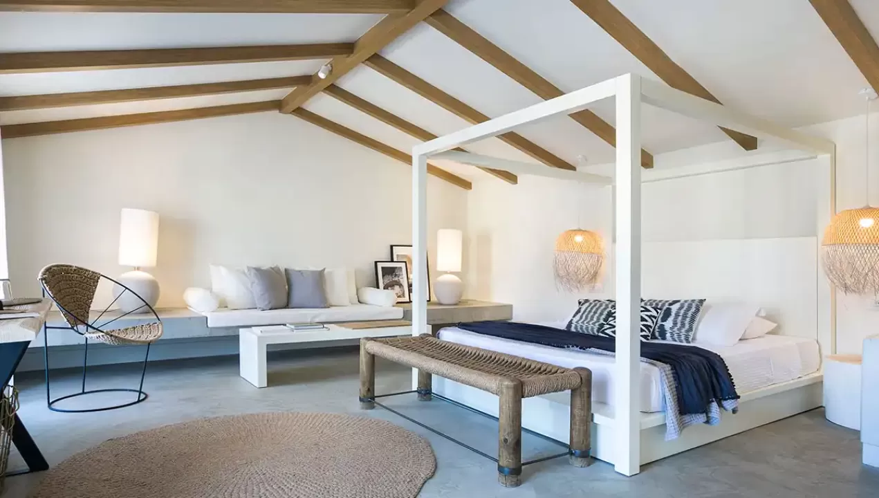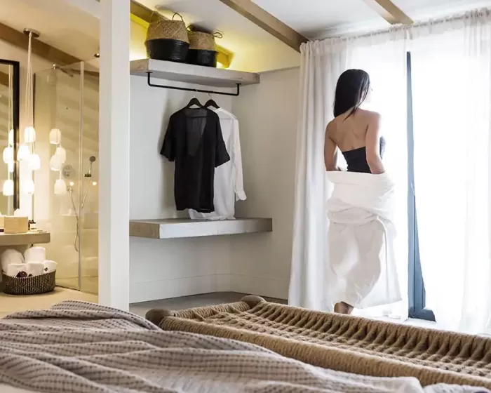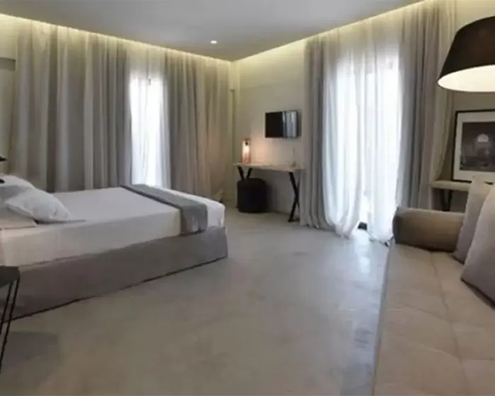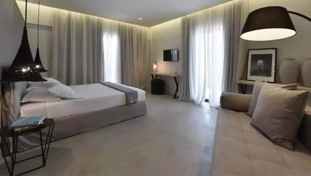 Hotel ima niz lepo dizajniranih soba i apartmana, od kojih mnogi imaju zadivljujući pogled na Jonsko more. Enterijer je minimalistički, ali luksuzan, sa visokokvalitetnim nameštajem, modernim sadržajima i privatnim balkonima koji poboljšavaju iskustvo gostiju.