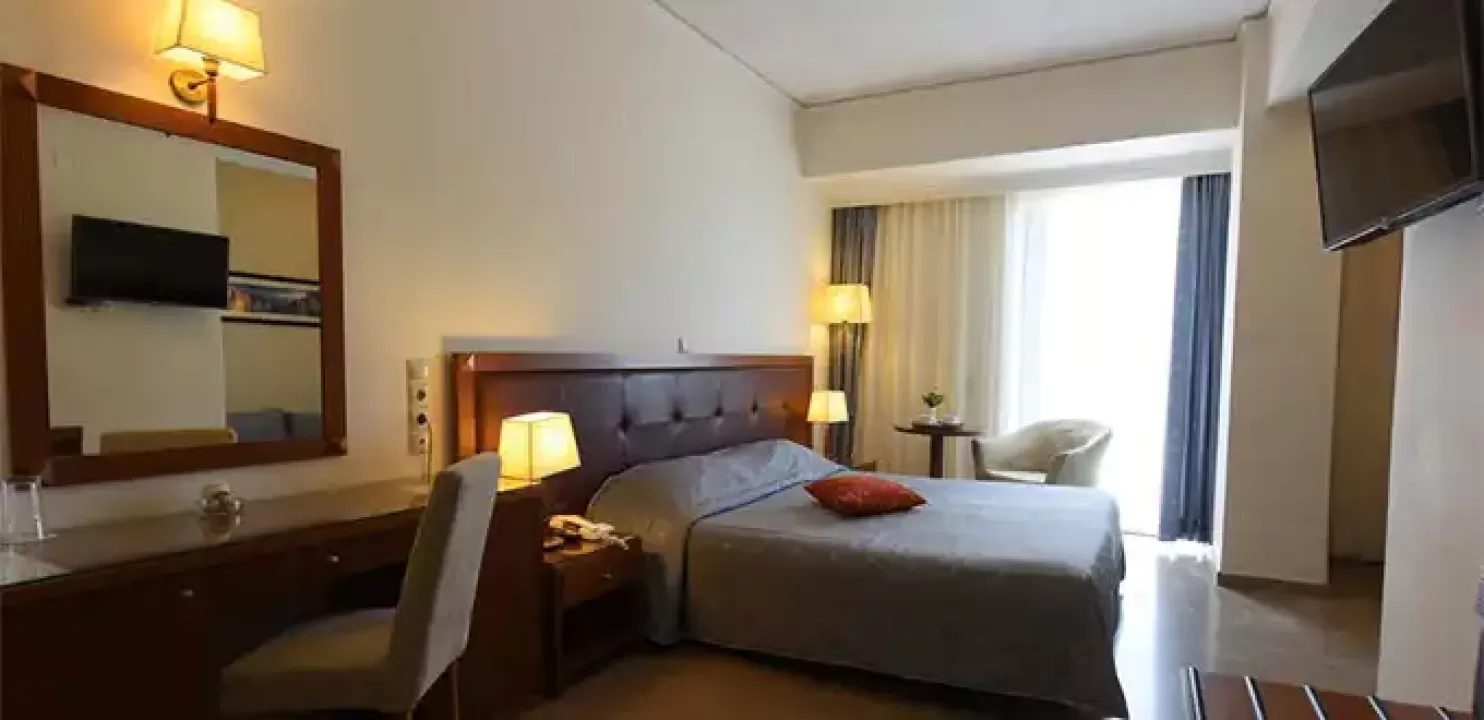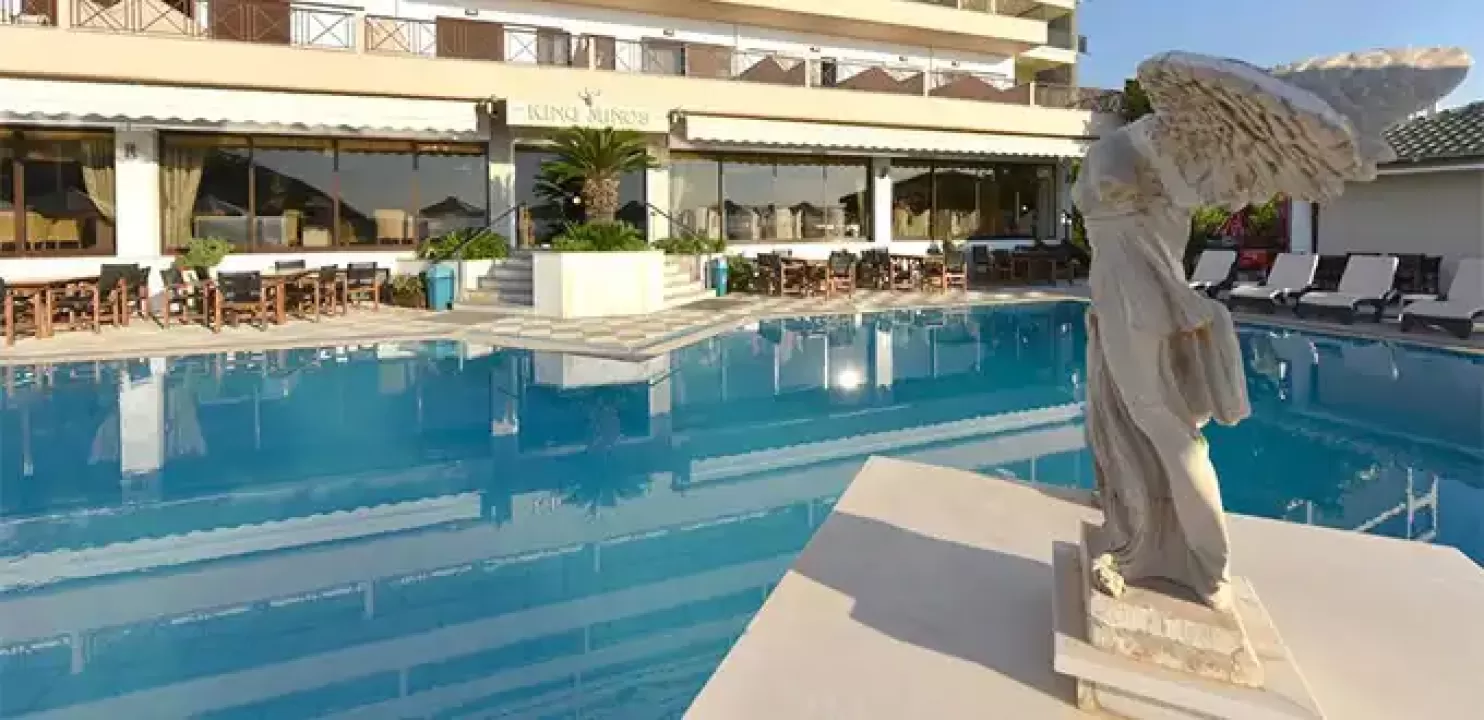 Hotel King Minos se nalazi na uzvišenju u mestu Tolo, na oko 150 metara od peščane plaže i 400 metara od centra letovališta. Hotel raspolaže sa 64 sobe, uključujući superior dvokrevetne sobe s pogledom na brdo ili more (površine oko 22 m²), kao i superior četvorokrevetne sobe (oko 32 m²) namenjene za smeštaj do četiri osobe. Hotel takođe nudi besplatan Wi-Fi internet u celom objektu. Zbog svoje lokacije, hotel pruža panoramski pogled na zaliv Tolo i okolinu, a najbliža plaža je udaljena samo nekoliko minuta hoda. Hotel King Minos je idealan za goste koji traže udoban smeštaj sa raznovrsnim sadržajima i blizinom plaže i centra mesta.