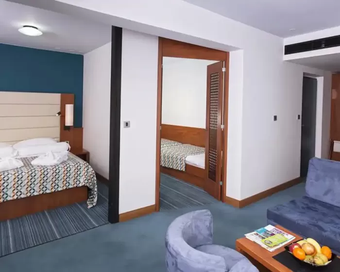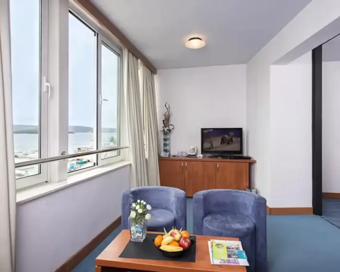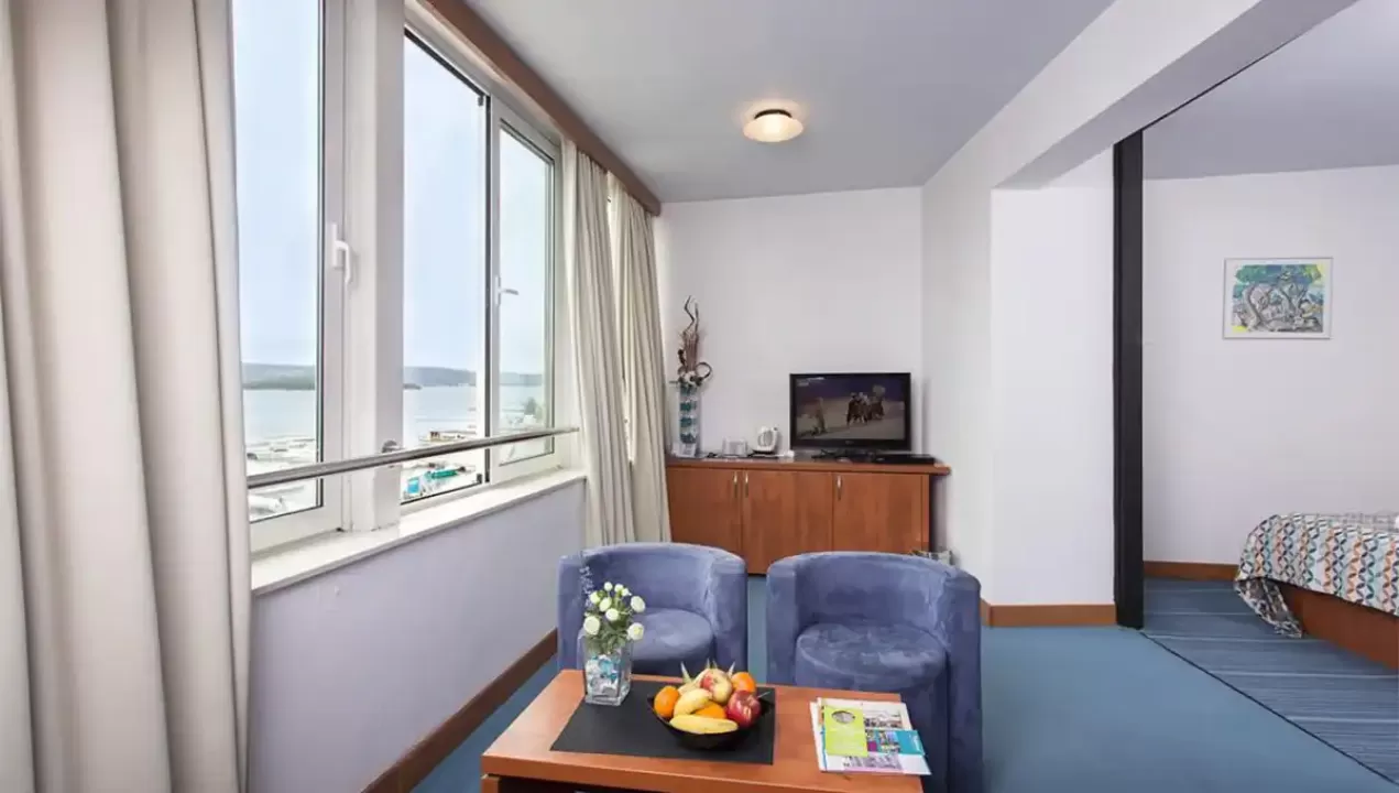Ukupno soba: Standard soba (Dvokrevetne sobe, ~22 m²), sobe koje nemaju pogled more nemaju ni balkone.U sobama: klima, televizor, mini frižider, tuš, fen (na upit, na recepciji), balkon.