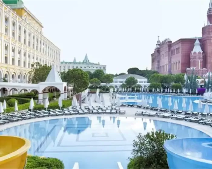 recepcija, osnovni restoran, 7 a la carte restorana (turski, italijanski, mediteranski, meksički, gril, japanski, internacionalni-uz doplatu), 7 barova, igraonica, 2 spoljašnja bazena, akva park sa 4 tobogana, unutrašnji bazen, 9 sala za konferencije (10-270 osoba), fitness centar, tursko kupatilo, sauna, skvoš, pikado, 2 teniska terena, teren za mini fudbal, teren za košarku, dnevne sportske aktivnosti i noćni šou programi, katamaran, wifi internet u lobiju, dečiji klubovi (4-6.99 god, 8-11.99 god), dečiji meni; uz doplatu: wifi nternet u sobama, room service, specijalna vinska lista u a la carte restoranima, de luxe brendirana pića, energetska pića, medicinske usluge, dadilja, masaža, beauty centar, škola tenisa, osvetljenje sportskih terena, škola jedrenja, ronjenja, motorni sportovi na vodi, kuglanje, bilijar, internet konekcija u sobama, frizer, pranje i peglanje veša, play station, video igre na automatima