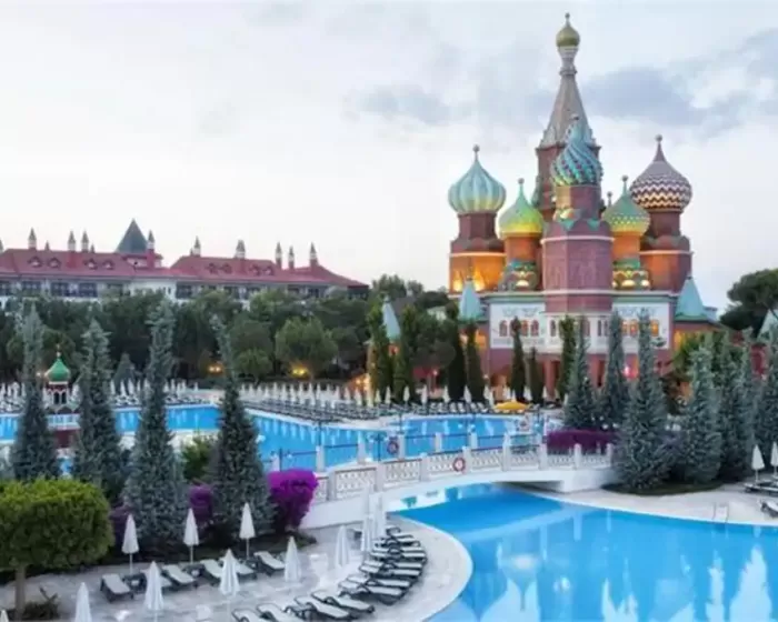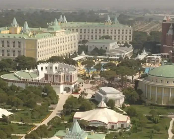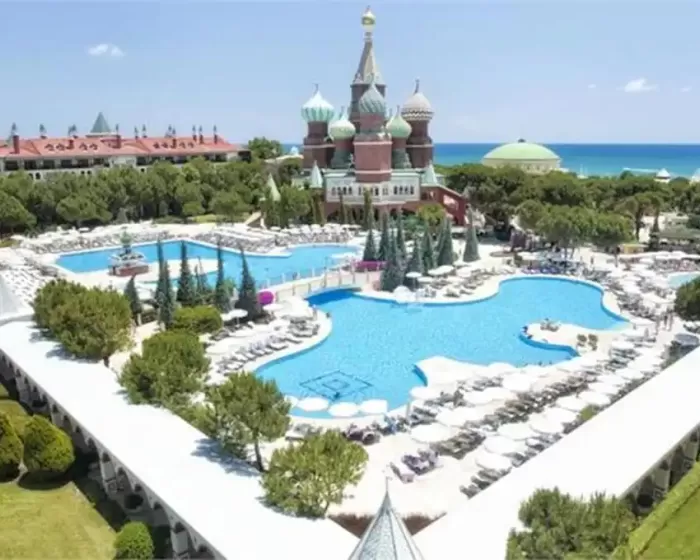 Hotel Kremlin Palace Antalija se nalazi na oko 17 kilometara udaljenosti od Lare. Plaža je peščana, dužine oko 215 metara. Hotel ima 859 soba.