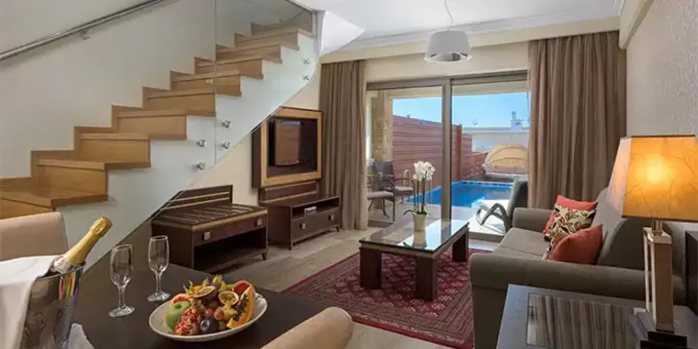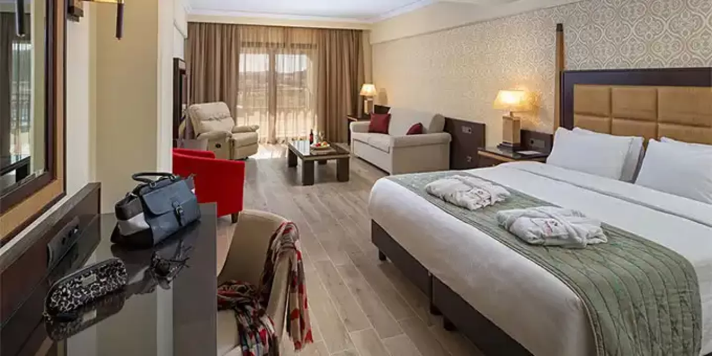 klima uredjaj, SAT TV, sef (uz doplatu), telefon, mini frižider, besplatni wifi internet, set za čaj i kafu, kupatilo, fen, bade mantil, balkon