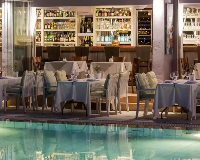 Hotel La Piscine Art Skiatos se nalazi na obodu grada Skijatosa, na oko 500 metara udaljenosti od luke i oko 2 kilometara od aerodroma. Na oko 50 metara od hotela nalazi se stanica odakle saobraćaju autobusi do svih poznatih plaža na ostrvu. Za goste na polupansionu večera se služi u a la carte restoranu "Crazy Cow". (izbor iz menija) Hotel ne prima osobe mladje od 16 godina.