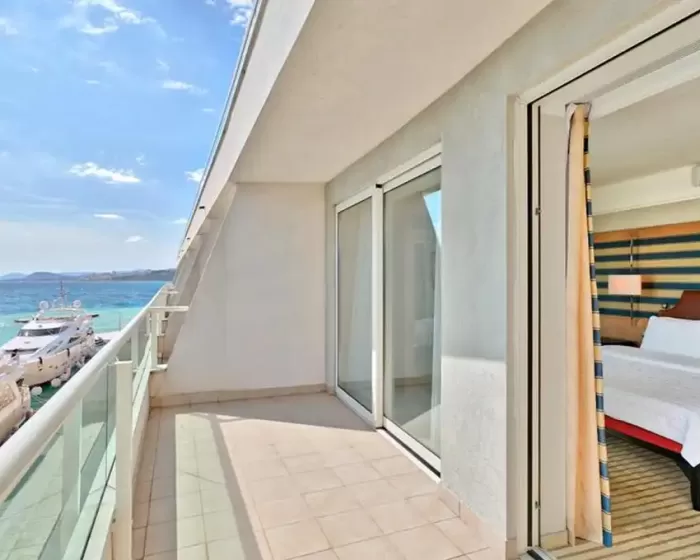 family soba: pogled vrt francuski balkon, pogled more terasa, odvojena spavaća soba, kreveti na sprat za decu.U sobama: klima, televizor, mini frižider, tuš, fen (na upit, na recepciji), balkon.