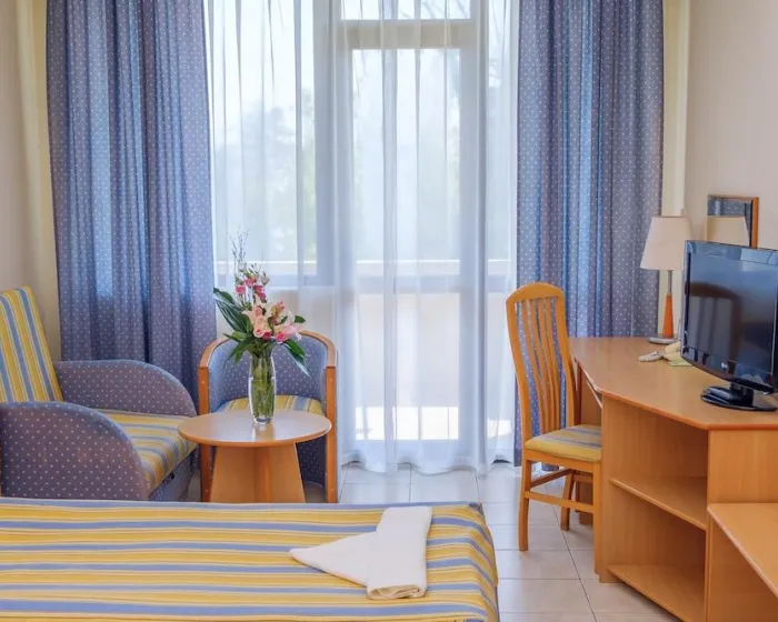 Hotel se nalazi 150 m od peščane plaže u prelepom parku. Gosti će pronaći prodavnice na samo 50 m od hotela, a autobuska stanica je udaljena oko 500 m. Varna je udaljena 7 km, a aerodrom u Varni je samo 20 km dalje.