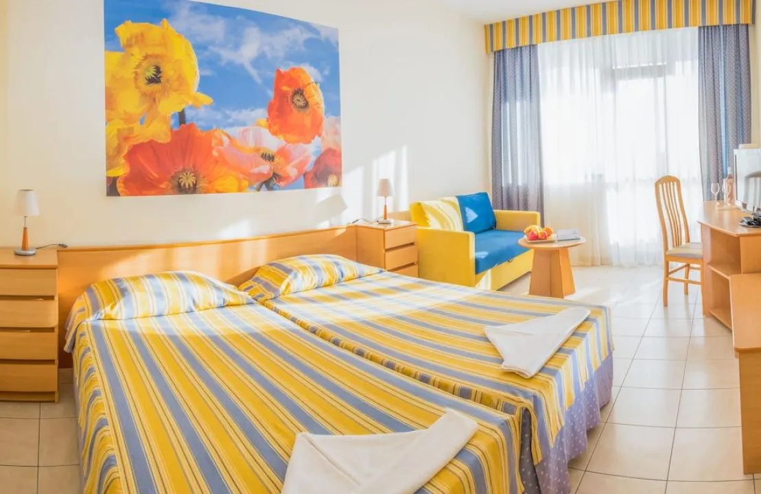 Klima uređaj i centralno grejanje osiguravaju da sobe održavaju udobnu temperaturu. Gosti mogu uživati u pogledu na more sa terase ili balkona. Sobe imaju bračni krevet i sofu. Kreveti za decu mogu se zatražiti za mlađe goste. Sef i mini bar su takođe dostupni. Gosti će takođe pronaći frižider među standardnim funkcijama. Opremljene direktnim telefonom, televizorom sa satelitskim / kablovskim kanalima i WiFi-jem, sobe pružaju mnoge načine za goste da ostanu povezani i zabavljaju se. Fen za kosu i telefon dostupni su u kupatilima, koja su opremljena tušem i kadom. Mogu se rezervisati sobe prilagođene osobama sa invaliditetom. Porodične sobe su dostupne za roditelje sa decom.