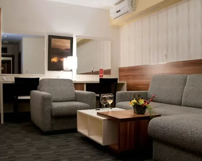 kupatilo, fen, mini-bar, klima-uredjaj, SAT TV, telefon, balkon sa garniturom za sedenje