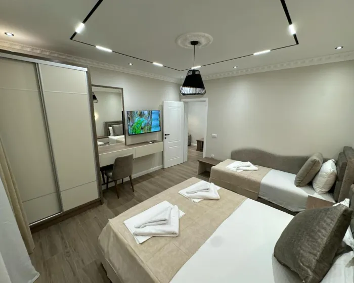 Apart hotel gostima pruža terasu, pogled na planinu, dnevni boravak, satelitsku televiziju sa ravnim ekranom, potpuno opremljenu kuhinju sa tosterom i frižiderom, kao i privatno kupatilo sa tušem i bade mantilima. Svaka jedinica ima balkon sa prostorom za ručavanje na otvorenom i pogledom na bazen. U apart hotelu, jedinice dolaze sa posteljinom i peškirima.