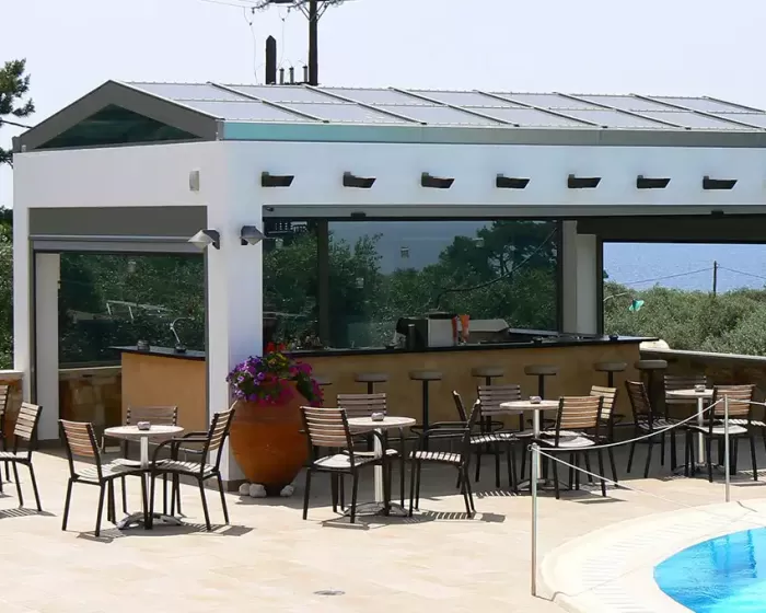 recepcija, bar, bazen, bar pored bazena, dečiji bazen, djakuzi, restoran, room service, sef, TV sala, parking