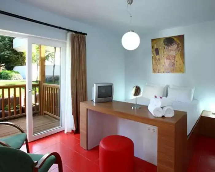 kupatilo, fen, klima-uredjaj, SAT TV, SAT TV, telefon, mini-bar sa dve flaše vode, sef, balkon sa garniturom za sedenje