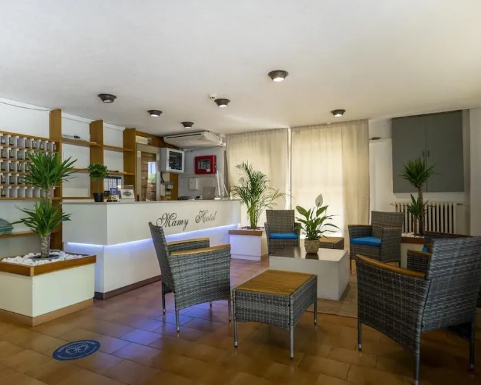 Hotel Mamy Rimini je smešten u centru Riminija, na oko 300 metara udaljnosti od uređenog dela plaže. Ovaj hotel ima lift i recepciju. Sadržaji dostupni u hotelu uključuju uslugu skladištenja prtljaga i sef. Bežični pristup internetu u javnim prostorima omogućava gostima da ostanu povezani. Turistički desk nudi pomoć pri rezervisanju ekskurzija. Svakodnevne potrepštine mogu se kupiti u supermarketu. U sklopu hotela nalazi se igralište i prelepa bašta. Dodatni sadržaji uključuju TV salu. Gostima koji putuju automobilom na raspolaganju su parking mesta. Ostale usluge obuhvataju 24-časovno obezbeđenje, uslugu čuvanja dece, uslugu čuvanja dece, uslugu pranja veša, frizera i perionice veša na kovanice. Usluga iznajmljivanja bicikala (uz doplatu) pruža gostima priliku da samostalno istraže okolinu