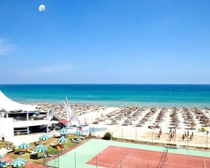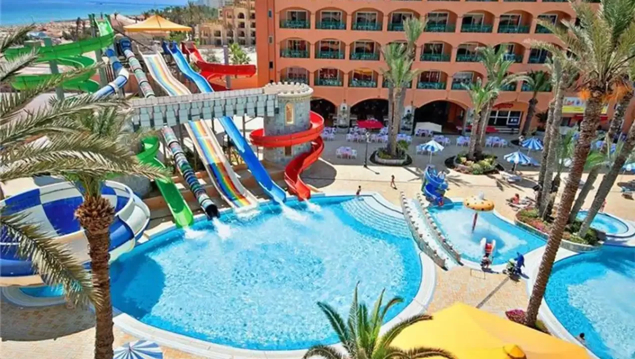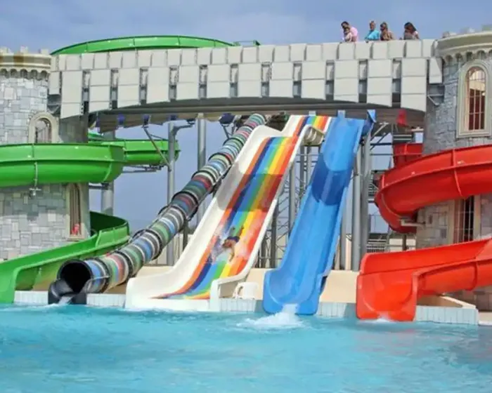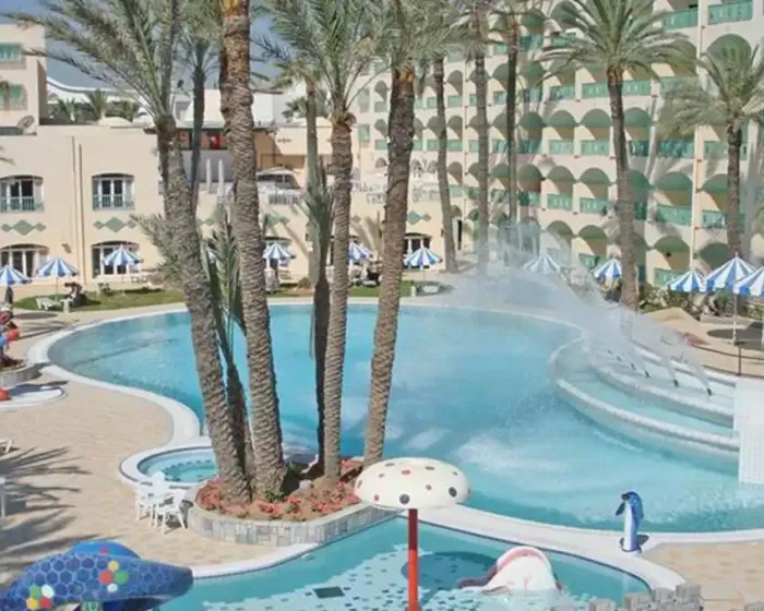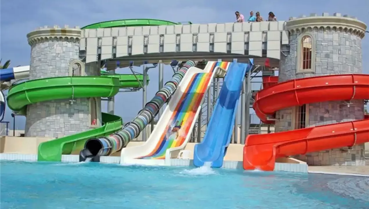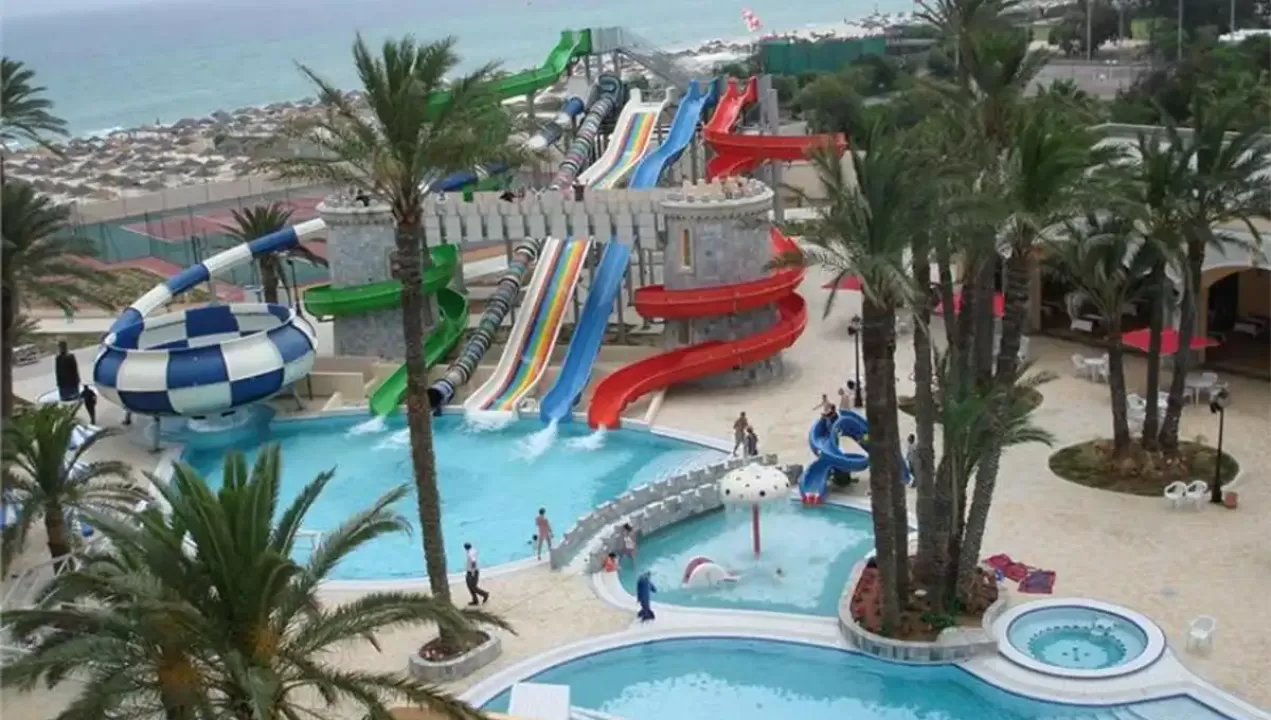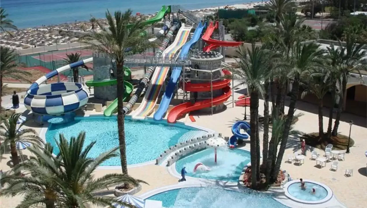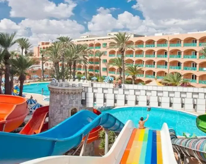 recepcija, veliki spoljašnji bazen podeljen na bazen sa akva parkom koji ima 6 tobogana, bazen za odrasle i dečiji bazen, unutrašnji bazen, tri lifta, dva restorana i dva bara, dečije stolice u restoranu, igralište, bazen za decu, akva park, mini disko i crtani filmoviSadržaji i aktivnosti uključene u cenu:Bežični internet na zajedničkim površinama, fitness, stoni tenis, aqua gym, odbojka na plaži, vaterpolo, fudbal, rukomet, đakuzi u bazenu.Sadržaji i aktivnosti koje se doplaćuju:Sef na recepciji, peškiri za plažu, masaža, hamam, teniski teren, uvozna i luksuzna pića i sve usluge koje nisu obuhvaćene all inclusive konceptom.