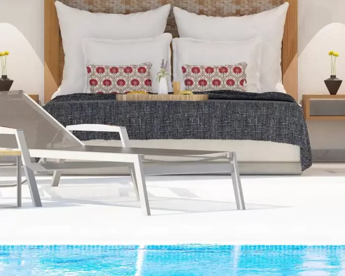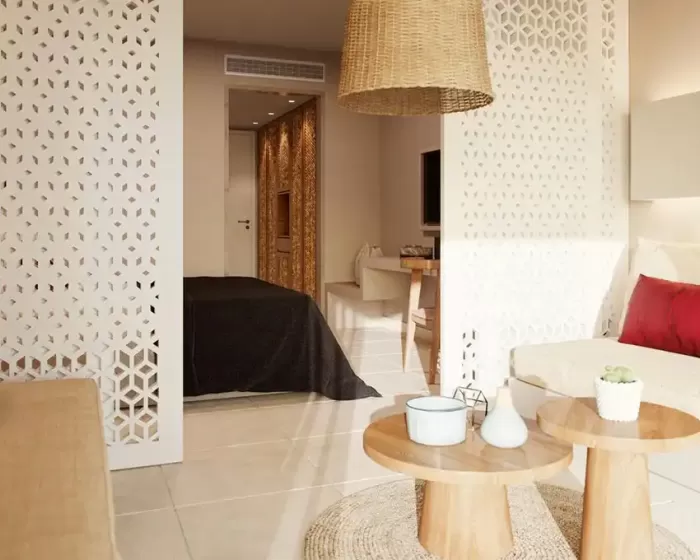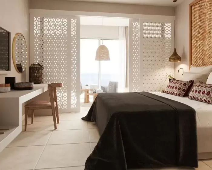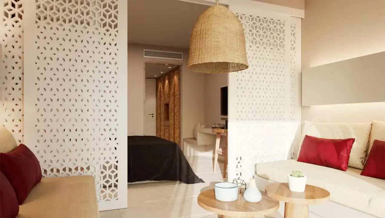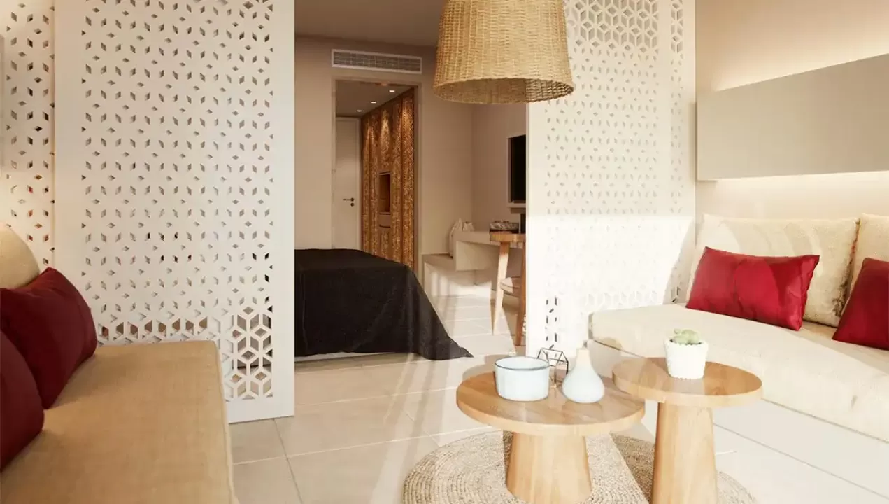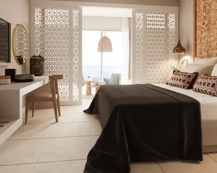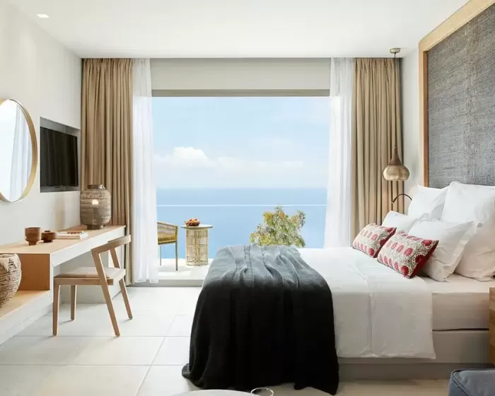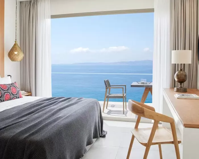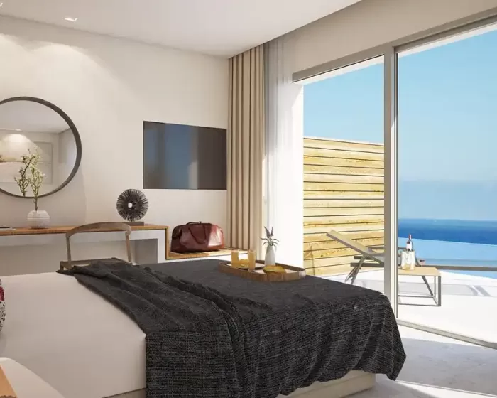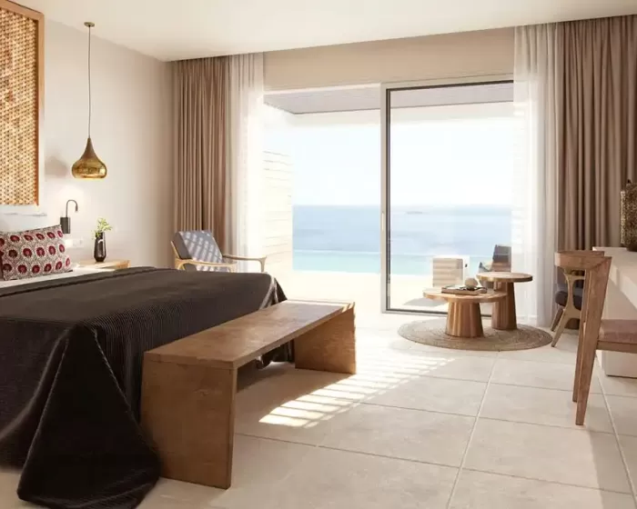 Ukupno 150 soba: Double Promo (28 m²), Double Deluxe Swim up SV (34-36 m²), Double Deluxe SV (34-36 m²), Double Superior Swim up SV (28 -30 m²), Double Superior SV (28-30 m²), Double Superior SV za Sgl (28-30 m²), Family Room SV (33 m²), Family Superior SV (45-46 kv.m), Family Superior Swim up SV (45-46 m²), Junior Suite Panorama SV (36 m²), Junior Suite Panorama Private Pool / SV (36 m²) , Suite Deluxe Private Pool / SV (55 m²), Suite Family 1 Broom Swim up SV (32 m²), Family Suite 1 Metla Swim up SV (32 m²), Suite Mezonet Private Pool / SV (61 m²).U sobama: klima uredjaj, Wi-Fi Internet, SAT TV, TV ravnog ekrana, telefon, mini bar, fen za kosu, sef , aparat za kafu / čaj, kupatilo (kada / tuš), ogrtači i papuče, balkon / terasa.Paket za medeni mesec (dekoracija sobe, boca šampanjca, voće u sobi po dolasku).Double Promo (28 m²) Francuski ležaj ili 2 odvojena ležaja.Double Deluxe Swim up SV (34-36 m²) Francuski ležaj ili 2 odvojena ležaja, prostor za sedenje s kaučem na razvlačenje, prostrano kupatilo, garderoba. Direktan pristup bazenu.Double Deluxe SV (34-36 m²) Francuski ili 2 odvojena ležaja, prostor za sedenje s kaučem na razvlačenje, prostrano kupatilo, garderoba.Double Superior Swim up SV (28-30 m²) Francuski ili 2 odvojena ležaja. Nameštena terasa sa prostorom za sedenje. Direktan pristup bazenu.Double Superior SV (28-30 m²) Francuski ili 2 odvojena ležaja.Double Superior SV za Sgl (28-30 m²) Francuski ili 2 odvojena ležaja.Family Room SV (33 m²) Porodične sobe otvorenog tipa: spavaća soba i prostrana dnevna soba sa dva odvojena ležaja na razvlačenje, odvojena kliznim vratima.Family Superior SV (45-46 m²) Prostrane porodične sobe otvorenog plana: spavaća soba i prostrana dnevna soba sa dva kreveta na razvlačenje, odvojena kliznim vratima.Family Superior Swim up SV (45-46 m²) Prostrane porodične sobe otvorenog tipa: spavaća soba i prostrana dnevna soba sa dva odvojena ležaja na razvlačenje, odvojena kliznim vratima. Direktan pristup bazenu.Junior Suite Panorama SV (36 m²) Prostrani junior apartman sa prozorima od poda do plafona s panoramskim pogledom na more, spavaćom sobom s francuskim ležajem ili dva odvojena ležaja i dnevnim boravkom sa kaučem na razvlačenje, radnim stolom. Veliki namešteni balkon.Junior Suite Panorama Private Pool / SV (36 m²) Velika sunčana terasa sa prostorom za opuštanje i ležaljkama uz privatni bazen. Francuski ležaj ili dva odvojena ležaja .Suite Deluxe Private Pool / SV (55 m²) Suite sa terasom od 72 m² sa bazenom. Prostrana spavaća soba s prostorom za sjedenje s kaučem na razvlačenje i bračnim krevetom.Suite Family 1 Broom SV (32 m²) Spavaća soba s francuskim ležajem ili 2 odvojena ležaja, odvojeni prostrani dnevni boravak sa 2 kauča na razvlačenje.Suite Family 1 Broom Swim up SV (32 m²) Spavaća soba sa francuskim ležajem ili 2 odvojena ležaja, odvojeni prostrani dnevni boravak sa 2 kauča na razvlačenje. Velika sunčana terasa. Direktan pristup bazenu.Suite Mezonet Private Pool / SV (61 m²) Dvoetažni apartman, prostrana spavaća soba na gornjem nivou i druga spavaća soba na donjem nivou sa kaučem na razvlačenje, dnevni boravak, toalet, tuš kabina i kupatilo.Tip dodatnog ležaja: sofa/kauč/krevet na razvlačenje.