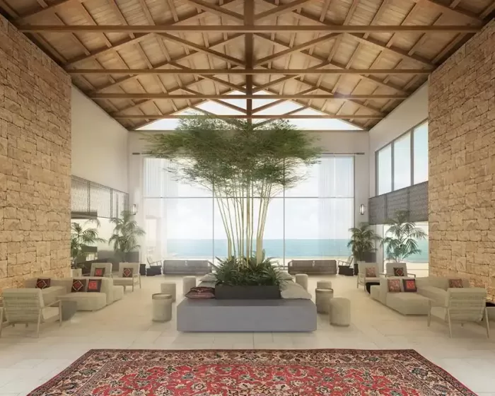 recepcija, lobi, wifi internet, spa centar, fitnes centar, wellness centar, otvoreni bazen, dečiji bazen, ležaljke i suncobrani oko bazena, ukupno tri restorana, snack bar, beach bar, uredjena plaža: (ležaljke i suncobrani, svlačionice, bar, tuševi, toaleti, spasioc na dužnosti), mini-market, butik, prodavnica nakita, pošta, konferencijska sala, menjačnica, igralište za decu, dadilja (na upit uz doplatu), pravoslavna crkva / kapela za venčanja, ogradjeni parking, obezbedjenje