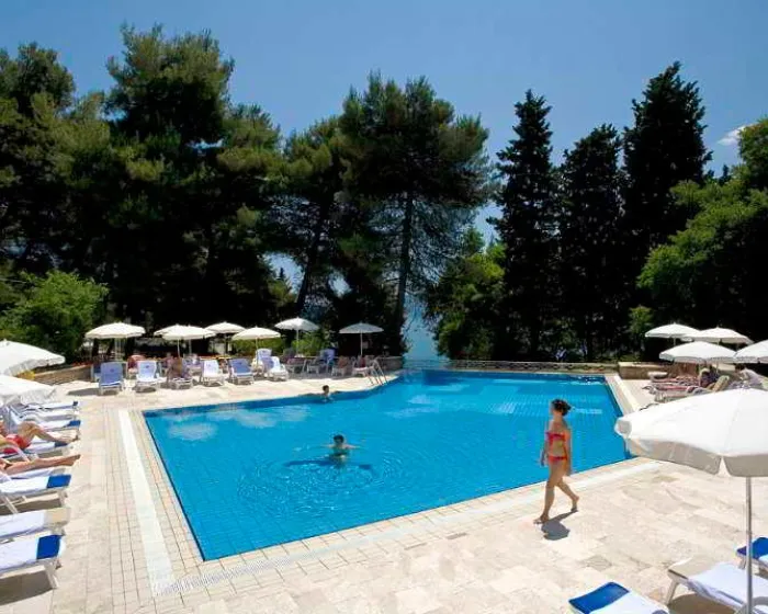 Hotel se nalazi na padini planine, okružen borovim šumama i samo je 70 metara udaljen od plaže.