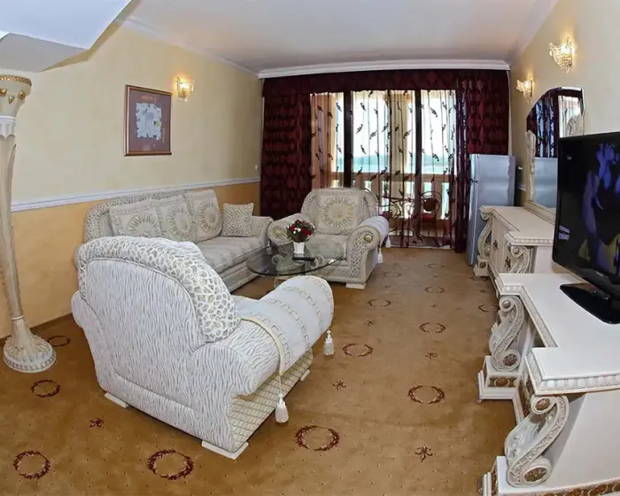veliko kupatilo, fen, klima-uredjaj, SAT-TV, telefon, sef (doplata), mini-bar