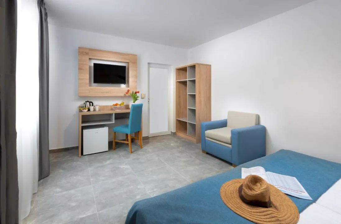 Sobe imaju klima uređaj i air conditioning. Pojedine sobe imaju balkon ili terasu sa pogledom na more. U sobama se nalaze bračni krevet, king size krevet ili sofa na razvlačenje. Mogu se rezervisati odvojene spavaće sobe. Dečiji krevetići i dodatni kreveti dostupni su na zahtev. Pojedine sobe imaju sef i minibar. Sve kuhinjice opremljene su frižiderom i aparatom za čaj ili kafu. Direktna telefonska linija, televizor sa satelitskim i kablovskim kanalima i WiFi obezbeđuju dodatnu udobnost. Kupatila su opremljena tušem i kadom, fenom za kosu i telefonom. Pojedine sobe prilagođene su osobama sa invaliditetom. Hotel ima 130 soba za nepušače.