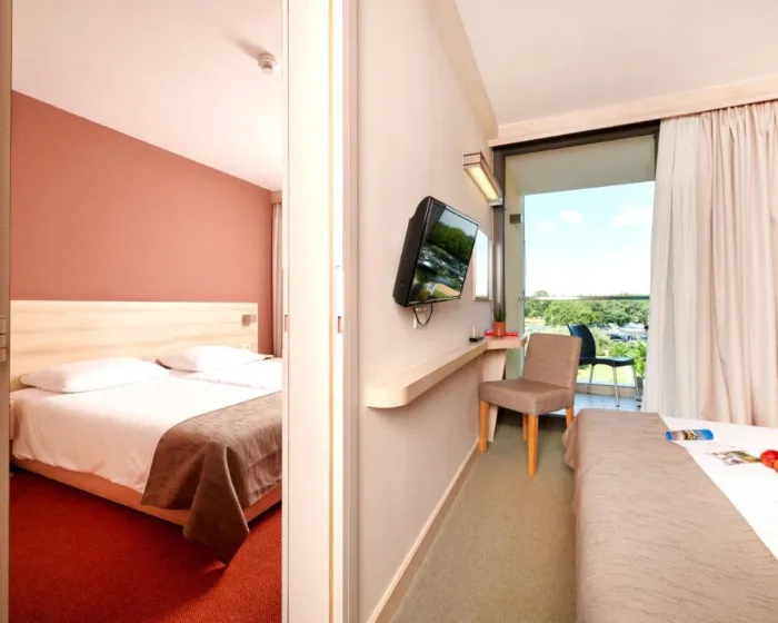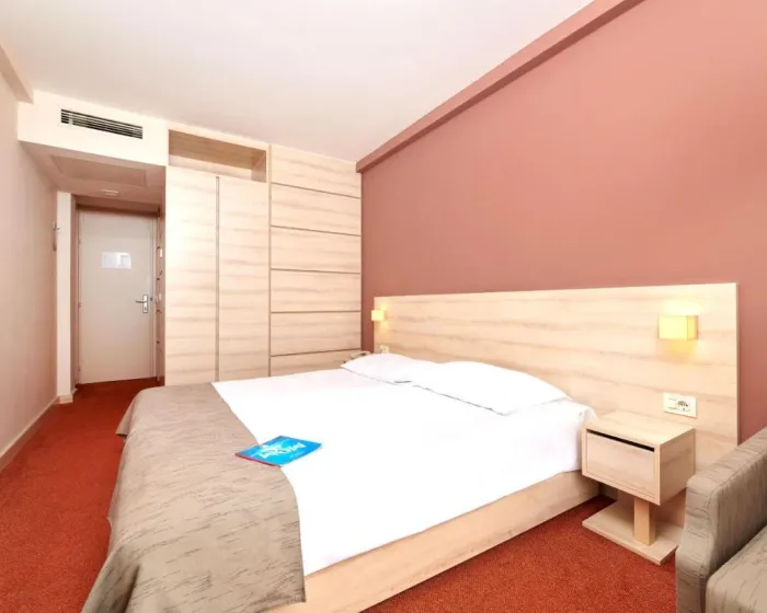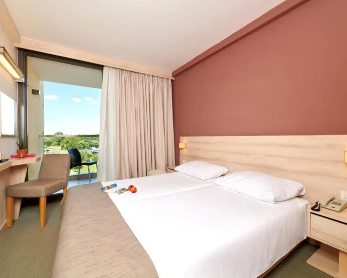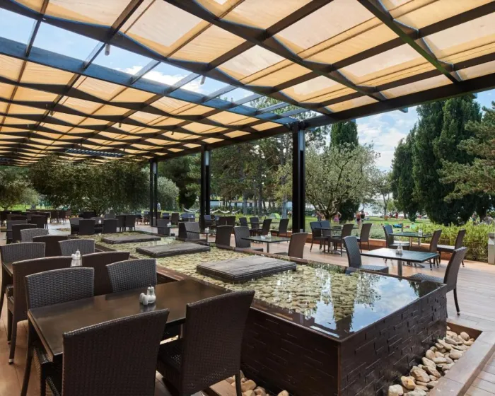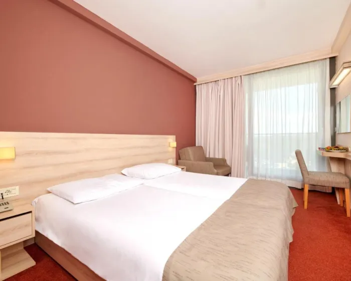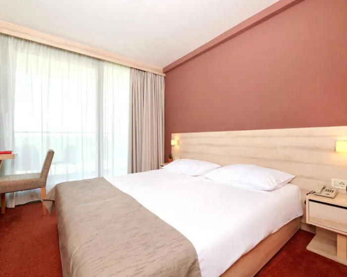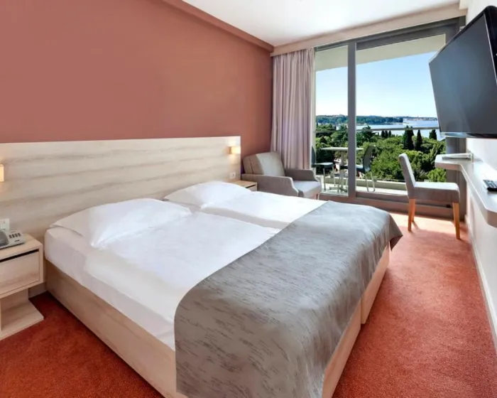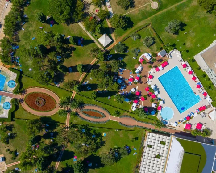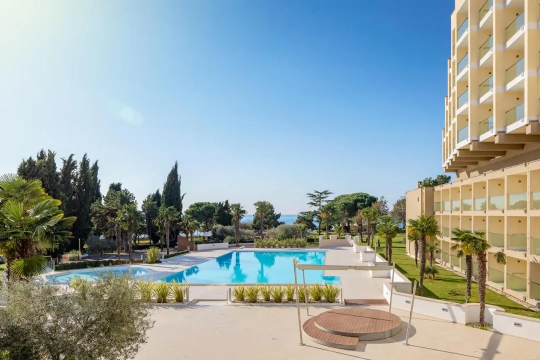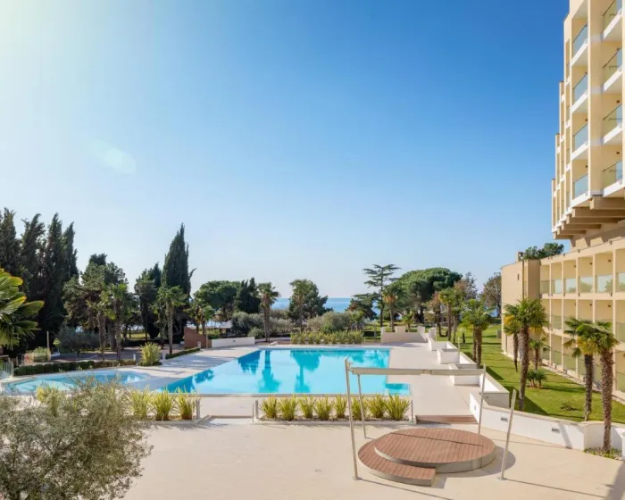 Centar Poreča, ovaj hotel se nalazi direktno na plaži. Hotel ima lift i 400 soba. Osoblje na recepciji je ljubazno i spretno da odgovori na sva pitanja. Uslugama kao što su čuvanje prtljaga, sef, menjačnica i bankomat obezbeđuju udoban boravak. Bežični pristup internetu omogućava gostima da ostanu povezani tokom odmora. Na raspolaganju je nekoliko prodavnica, uključujući suvenirnicu. Hotelski prostor obuhvata dečje igralište i predivan vrt. Dodatne pogodnosti uključuju TV salu i igraonicu. Parking je dostupan gostima koji putuju automobilom. Ostale usluge uključuju uslugu čuvanja dece, medicinsku pomoć, room servis, vešeraj, frizera, samoposlužnu perionicu veša i hotelskog lekara. Usluge iznajmljivanja bicikala pružaju svu potrebnu opremu za istraživanje okolne oblasti. Internet centar je na raspolaganju za poslovne potrebe gostiju.