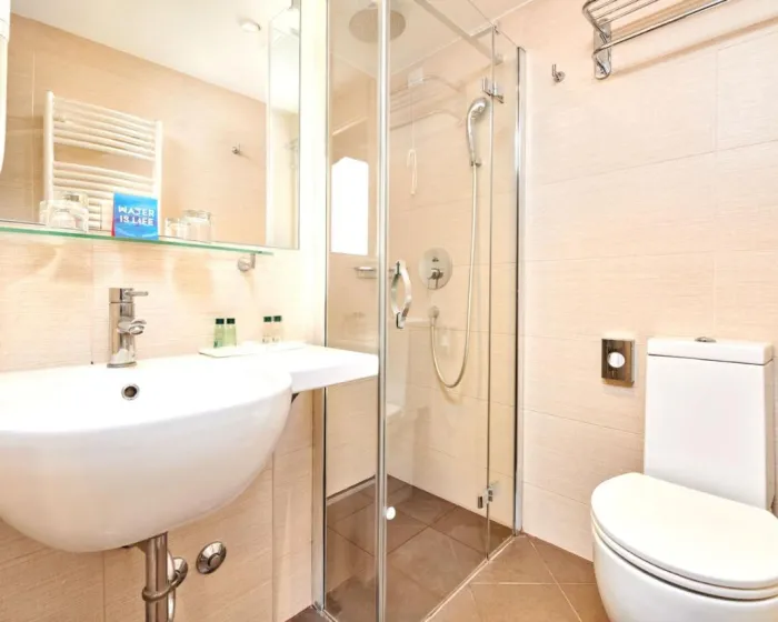Klima uređaj i centralno grejanje osiguravaju da sobe održavaju udobne temperature. Gosti mogu uživati u pogledu na more sa balkona ili terase. Sve sobe su postavljene tepihom i uključuju bračni krevet ili sofu. Dostupne su odvojene spavaće sobe. Kreveti za decu i dodatni kreveti mogu se zatražiti za mlađe goste. Na raspolaganju su i sef i mini bar. Gosti će pronaći i frižider među standardnim sadržajima. Telefon, televizor sa satelitskim i plaćenim kanalima, kao i WiFi (bez dodatne naplate) pružaju sve neophodno za udoban odmor. Kupatila su opremljena tuš-kadom i fenom za kosu. Hotel ima porodične sobe i sobe za nepušače.