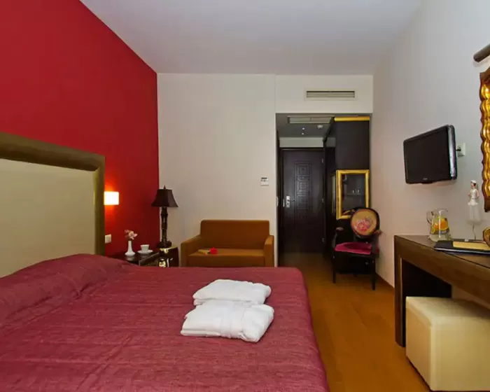 kupatilo, fen, internet priključak, klima-uredjaj, mini-bar, sef, telefon, SAT-TV, balkon sa garniturom za sedenje