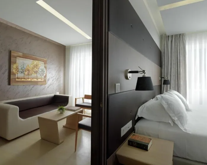 Sobe su opremljene klima uređajem i individualno podešavajućim grejanjem. Gosti mogu uživati u pogledu na grad sa balkona ili terase. Sobe imaju bračni krevet, krevet dimenzija queen, krevet dimenzija king ili sofa krevet. Dostupne su odvojene spavaće sobe. Kreveti za decu i dodatni kreveti mogu se zatražiti za mlađe goste. Takođe su dostupni sef, minibar i radni sto. Kuhinjica dolazi sa frižiderom, malim frižiderom i aparatom za kafu/čaj. Dostupni su direktno birani telefon, TV i WiFi (bez dodatne naplate). Papuče su uključene. Kupatila su opremljena tušem i kadom. Fen za kosu, bade mantili i telefon su dostupni za svakodnevnu upotrebu. Kozmetički proizvodi i izbor peškira pružaju dodatnu udobnost u kupatilima. Kupatila prilagođena za invalidska kolica takođe mogu biti rezervisana. Porodične sobe su dostupne za roditelje sa decom.