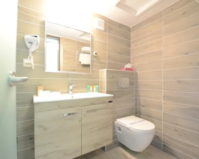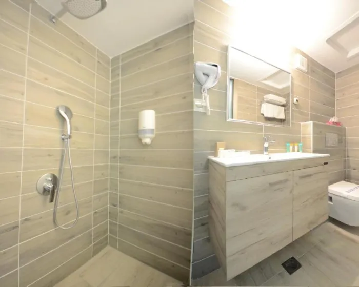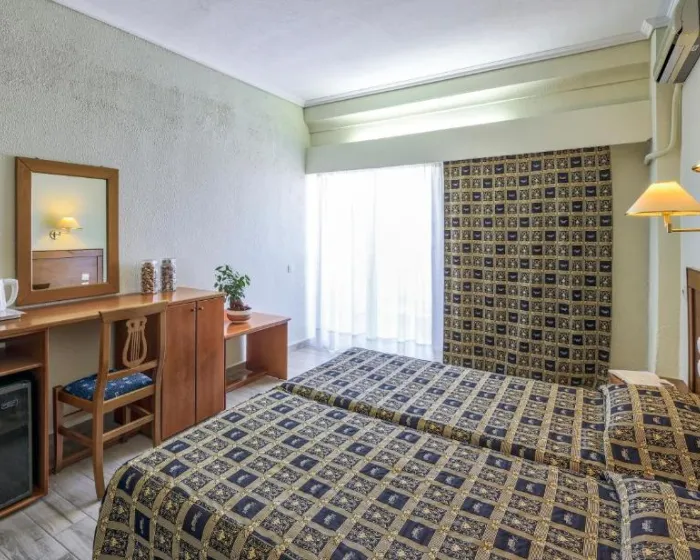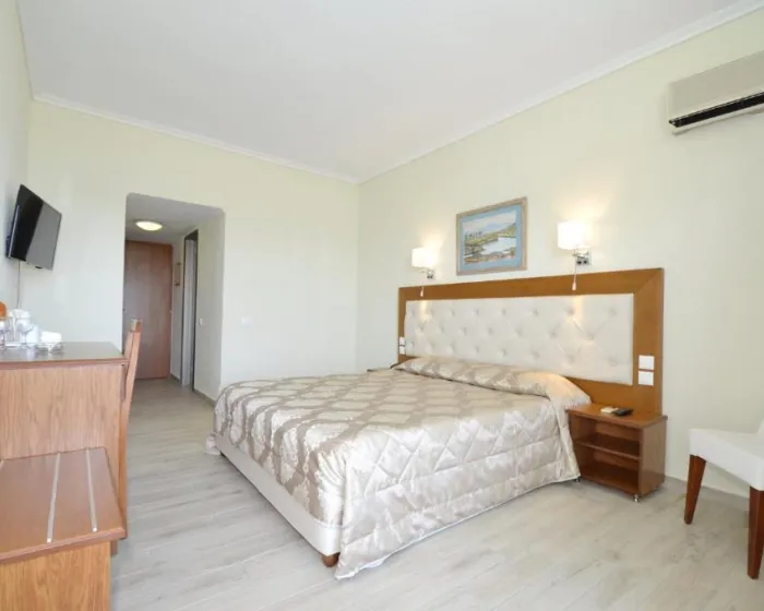 Sve sobe su klimatizovane i imaju grejanje. Većina soba ima balkon ili terasu sa pogledom na more. Sobe su opremljene francuskim ležajem i sofom na razvlačenje, a na zahtev su dostupni i dečji kreveti. Gostima su na raspolaganju sef, mini kuhinja sa frižiderom i aparatom za kafu/čaj, direktna telefonska linija, TV, radio i besplatan Wi-Fi. Kupatila su opremljena tušem, kadom, fenom i ogledalom za šminkanje. Hotel raspolaže porodičnim i sobama za nepušače.
