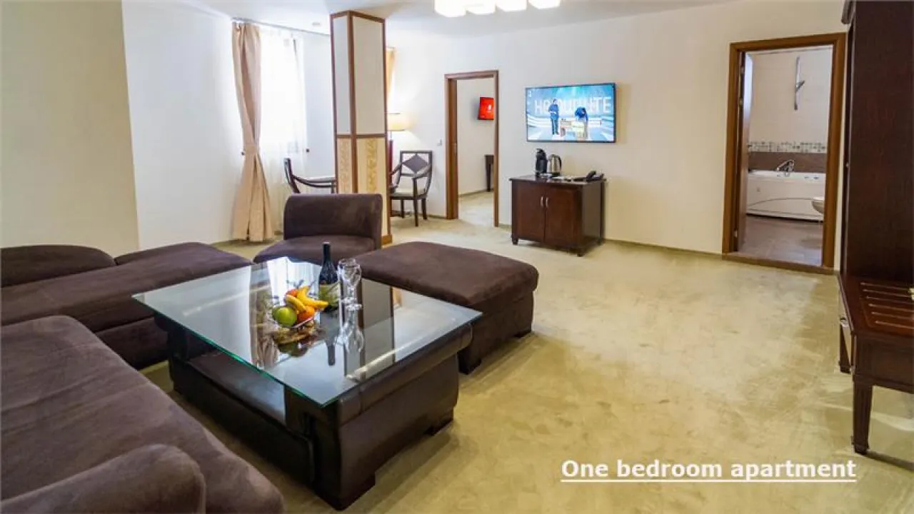Jednosobni apartman za 2-4 osobe (2+2)s pavaća soba sa francuskim ili dva odvojena ležaja, dnevni boravak sa sofom na razvlačenje. Namenjena smeštaju 4 odrasle osobe ili dve odrasle osobe i dvoje dece do 11,99 god.