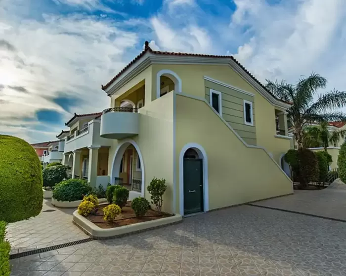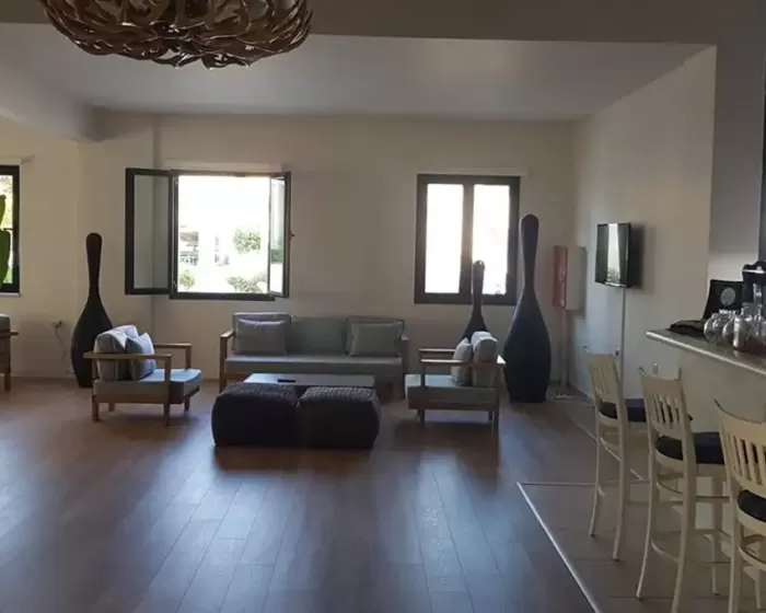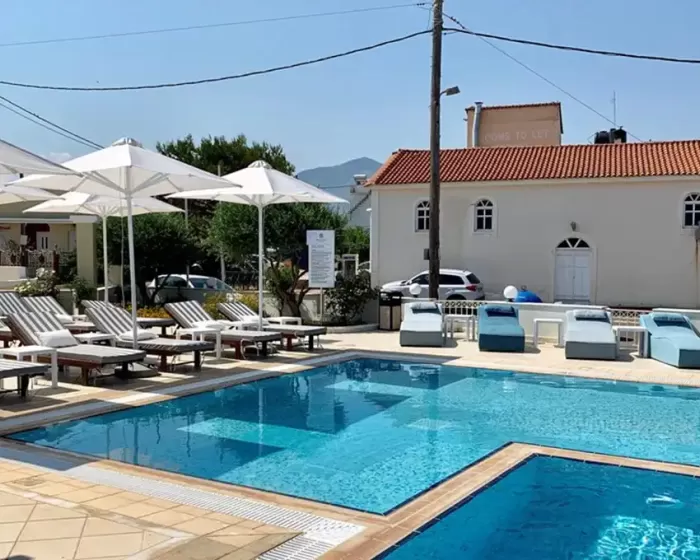Maksimalan broj osoba u sobi je odredjen tabelom i stavkom \"Max Osoba\".Ukupno 64 sobe: Double Studios (~35 m²), Maisonettes (~40-45 m²), Family Rooms (~40 m²).U sobama: opremljena mini-kuhinja (električni šporet sa 2 ringle, posudje), klima-uredjaj, SAT TV, mini-frižider, telefon, kada/tuš, set za kupatilo, fen, opremljen balkon/terasa.Studio (~35 m²) 2 odvojena ležaja, opremljena mini-kuhinja, dodatno - pomoćni ležaj na rasklapanje.Mezoneta (~40-45 m²) Dva nivoa. U prizemlju: dnevni boravak sa kaučem/sofom na razvlačenje, kupatilo, opremljena mini-kuhinja; Na 1. nivou: spavaća soba sa francuskim ležajem, kupatilo, terasa.Family soba (~40 m²) Spavaća soba sa francuskim ležajem i dnevni boravak sa kuhinjskim kutkom i kaučem/sofom. Tip dodatnog ležaja - sofa/fotelja/krevet na rasklapanje.