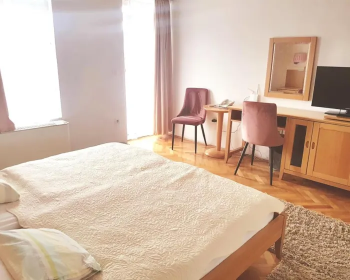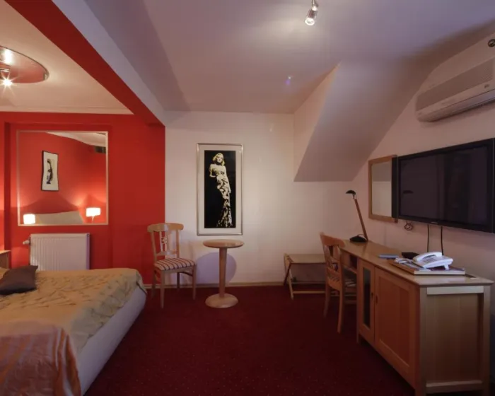 Ovaj hotel se nalazi u Osijeku. Najbliži aerodrom je Osijek (OSI). Hotel ima lift i ukupno 17 soba. Osoblje na recepciji je ljubazno i spretno da odgovori na sva pitanja. Sadržaji uključuju uslugu čuvanja prtljaga i sef. Bežični internet je dostupan u javnim prostorijama. Dodatni sadržaji uključuju prostoriju sa televizorom. Gosti koji dolaze automobilom mogu besplatno parkirati svoja vozila. Dodatne usluge i sadržaji uključuju uslugu sobne usluge, uslugu buđenja, uslugu pranja veša i samostalno pranje veša. Usluga iznajmljivanja bicikala daje gostima priliku da samostalno istraže okolinu. Besplatne novine su dostupne. Internet centar je dostupan za poslovne potrebe. Sobe su opremljene klima uređajem i centralnim grejanjem. Gosti mogu uživati u pogledu na grad sa balkona ili terase. Sve sobe su sa tepihom i sadrže bračni krevet ili sofu. Takođe su dostupni sef, minibar i radni sto. Dodatni sadržaji uključuju frižider i mini frižider. Pegla je obezbeđena radi gostovog komfora. Takođe su obezbeđeni telefon, televizor sa satelitskim/ kablovskim kanalima i WiFi (bez dodatnih troškova). Kupatila su opremljena tušem i fenom za kosu. Kozmetički proizvodi i izbor peškira pružaju dodatnu udobnost u kupatilima. Hotel ima porodične sobe i sobe za nepušače. Dobar vremenski uslovi mogu se uživati na terasi. U wellness centru hotela su dostupni tretmani masaže. Koordinatori aktivnosti organizuju program zabave za odrasle i decu. Dostupni su različiti restorani, kafići i barovi. Doručak i ručak se služe svakog dana. Posebni obroci, uključujući dijetalne obroke, takođe su dostupni. Hotel takođe nudi posebne opcije keteringa.
