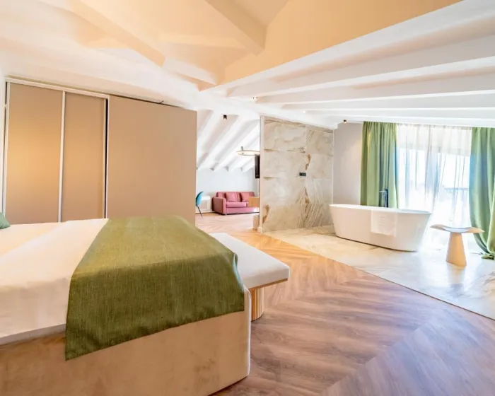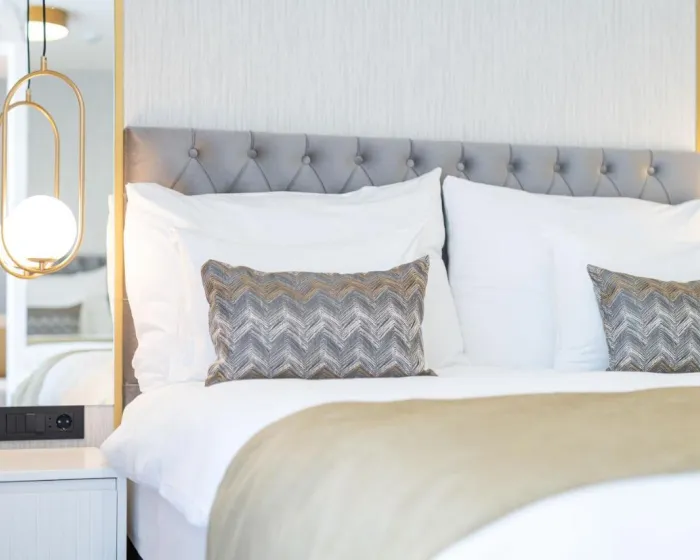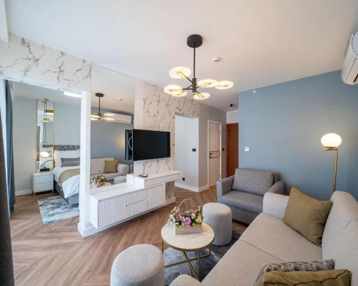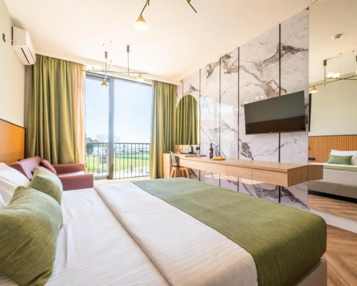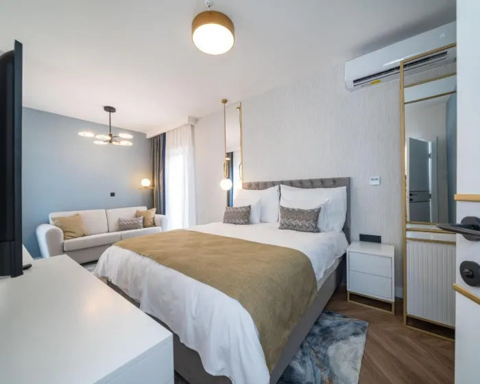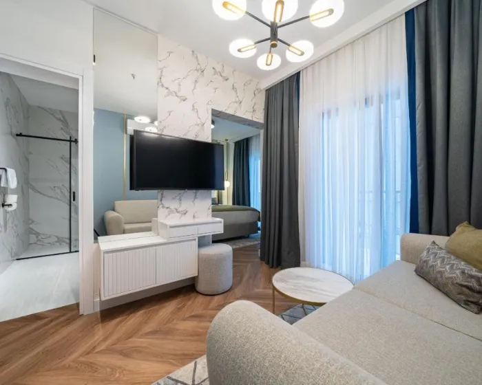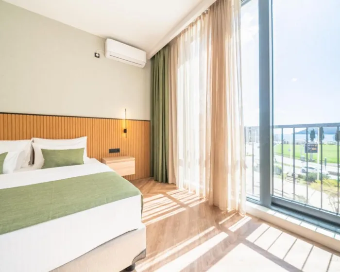 Klima uređaj i centralno grejanje obezbeđuju da sobe održavaju prijatnu temperaturu. Gosti mogu uživati u pogledu na more sa balkona ili terase. Sve sobe su popločane i uključuju bračni krevet, krevet queen size, krevet king size ili sofu. Dostupne su i odvojene spavaće sobe. Kreveti za decu i dodatni kreveti mogu se zatražiti za mlađe goste. Sef, minibar i radni sto takođe su dostupni. Gosti će pronaći i stanica za čaj/kafu među standardnim sadržajima. Telefon, TV i WiFi (bez dodatne naplate) obezbeđuju sve neophodno za udoban odmor. Papuče su uključene. Kupatila su opremljena tuš kabinom i kadom. Fen za kosu, ogledalo za šminkanje i bade mantili su dostupni za svakodnevnu upotrebu. Hotel ima porodične sobe i sobe za nepušače.