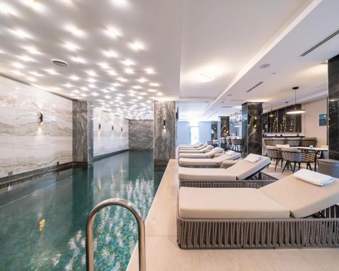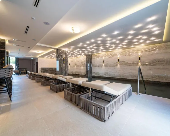 Unutrašnji i spoljašnji bazeni idealni su za vežbanje kao i relaksaciju. Gosti mogu uživati u osvežavajućim pićima u baru pored bazena i opuštajućem kupanju u đakuziju. Udobne ležaljke su dostupne na terasi. Različite wellness opcije su dostupne u hotelu, uključujući spa centar, saunu, parno kupatilo, hamam i solarijum.