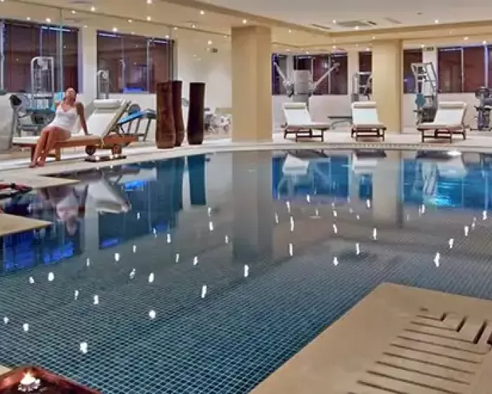 recepcija, prodavnica, wifi internet, glavni restoran, restoran a la carte, lobby bar, dva otvorena bazena sa morskom vodom, zatvoreni bazen sa slatkom vodom, dva dečija bazena, dva bara na plaži, dva bara pored bazena, sala za konferenciju, teniski tereni, sala za stoni tenis, igralište za decu, hemijsko čišćenje, parking