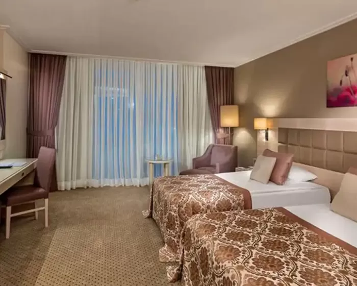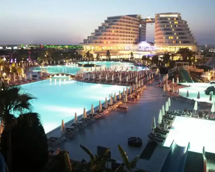 Turkuaz glavni restoran na bazi otvorenog bufea (uvozna pića se ne služe), A’la Carte restorani: Miracolo (italijanski), Anatolia (turski), Lagos (riblji), Mexican (meksički), Steak House, Pier (riblji i restoran morske hrane), lobi bar (domaća i određena uvozna pića od 10:00 do 02:00h), bar pored bazena (domaća i određena uvozna pića od 10:00 do 23:00h), bar na plaži (samo bezalkoholna pića), usluga lekara, usluga pranja veša, čuvanje dece, telefon, fax, internet kafe, kompjuterske igre, kolica za bebe, šoping centar, otvoreni i zatvoreni bazeni, dečiji bazen, tobogani, fitnes, tursko kupatilo, sauna, parno kupatilo, aerobik, step, gimnastika, fudbal, mini fudbal, mini golf, odbojka i fudbal na plaži, košarka, 4 teniska terena, stoni tenis, streljaštvo, šah, pikado, zabavni program tokom dana, zatvoreno pozorište, turske večeri, pub, muzika uživo, bioskop i disko na otvorenom, mini klub za decu od 4 do 14 godina i junior klub, oprema za tenis, osvetljenje za teniske terene i časovi tenisa, bilijar, solarijum, masaža, SPA, salon lepote, internet i kompjuterske igre, sportovi na vodi.