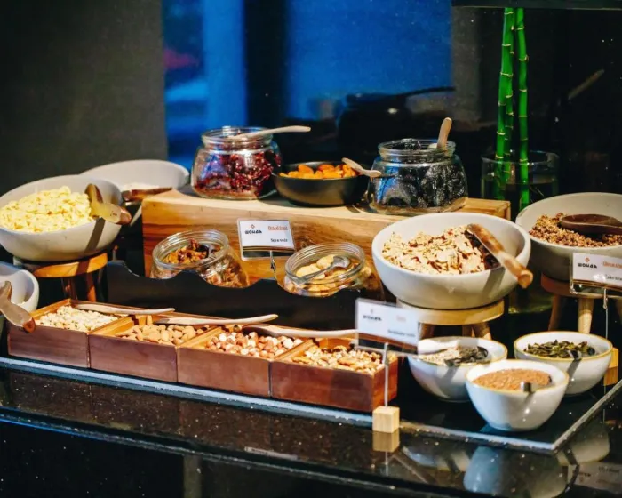 Različite opcije za obroke su dostupne, uključujući restoran, kafić i bar. Kontinentalni doručak i ručak se služe svakog dana. Dijetetski obroci i dečji obroci mogu se pripremiti na zahtev. Hotel takođe nudi posebne opcije keteringa.