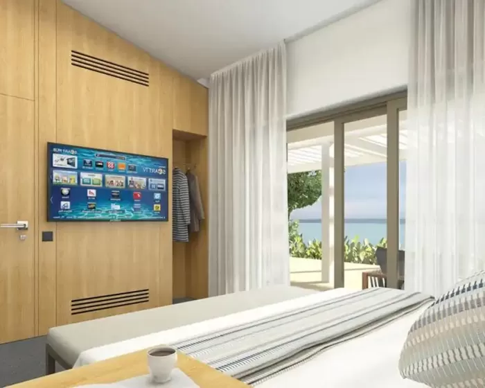 Sobe sadrže dnevni boravak i kupatilo, a klimatizovane su radi prijatne temperature tokom celog dana. Iz pojedinih soba pruža se delimičan ili direktan pogled na more sa balkona ili terase. Sve sobe su sa tepihom i opremljene francuskim ili pomoćnim ležajem. Po zahtevu su dostupni dečji kreveti. Tu su i sef i mini-bar, kao i mini frižider i aparat za kafu/čaj. Za dodatnu udobnost gostima su dostupni telefon, TV i besplatan Wi-Fi. Uveče je dostupna i usluga pripreme kreveta za spavanje (turndown service), a moguć je i izbor jastuka. Kupatila su opremljena tušem i kadom, fenom za kosu, ogledalom, bade-mantilima i telefonom. Na zahtev su dostupne sobe prilagođene osobama sa invaliditetom.