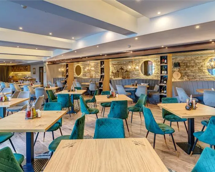 Hotel Murgavets Pamporovo se nalazi na odličnoj lokaciji, u samom centru Pamporova, na oko 1.3 kilometara udaljenosti od ski lifta. Scenski pogled koji oduzima dah, odvešće vas duboko u planinu, u svežinu borovih šuma i kristalno čist planinski vazduh skijaških staza. Glavni restoran hotela Murgavets nudi svojim gostima obilan jelovnik bugarske kuhinje i ukusnih rodopskih jela sa domaćim sarmijima (usitnjenim mesom i rižom umočenim u vinovu lozu), jelom od krompira, smiljanskim pasuljem kuvanim u glinenoj posudi i još mnogo toga. Tačno ispred vas kuvar će vam pripremiti slanu chevermu (pečeno jagnje). Gosti će moći da biraju izmedju domaćeg vina, rakije od šljiva i različitih pića marke. Fascinantan folklorni program i jedinstvena rodopska muzika dodaće autentičnoj atmosferi restorana.