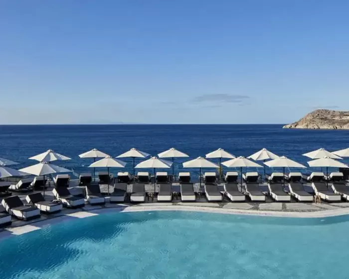 Hotel Myconian Imperial Resort and Villas Kalafatis Beach Mikonos se nalazi na Eli plaži, na 10 kilometara od aerodroma, a centar grada je na 20 min vožnje.