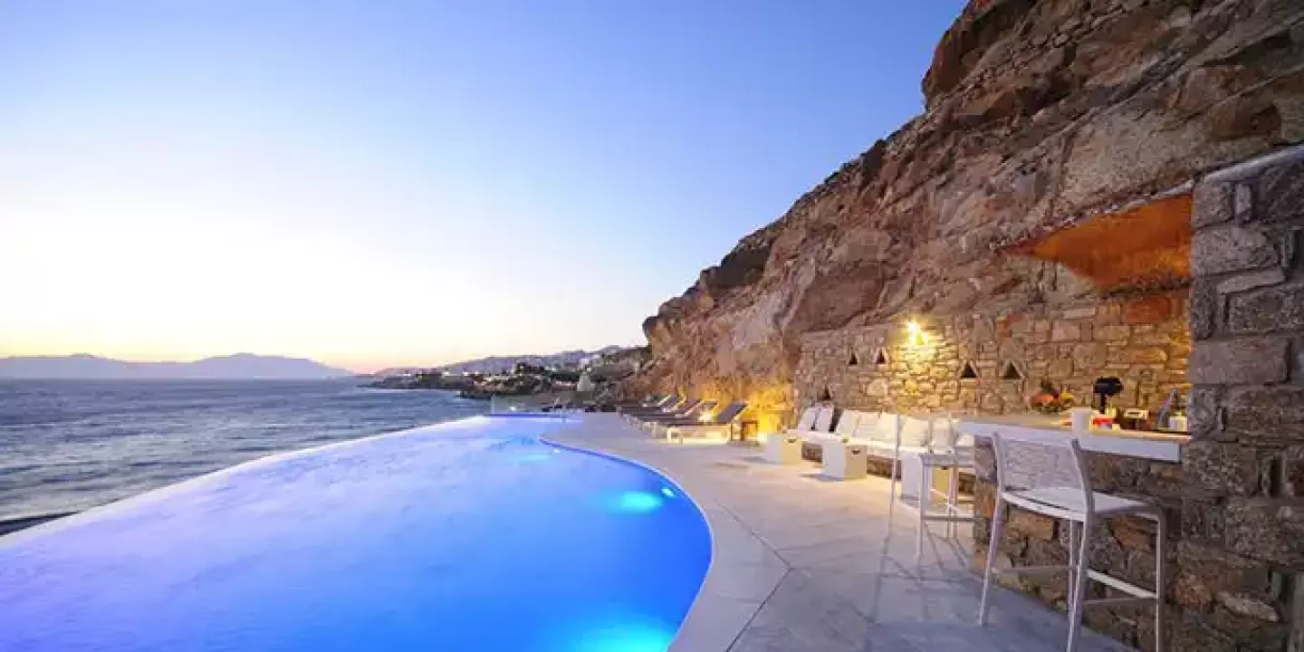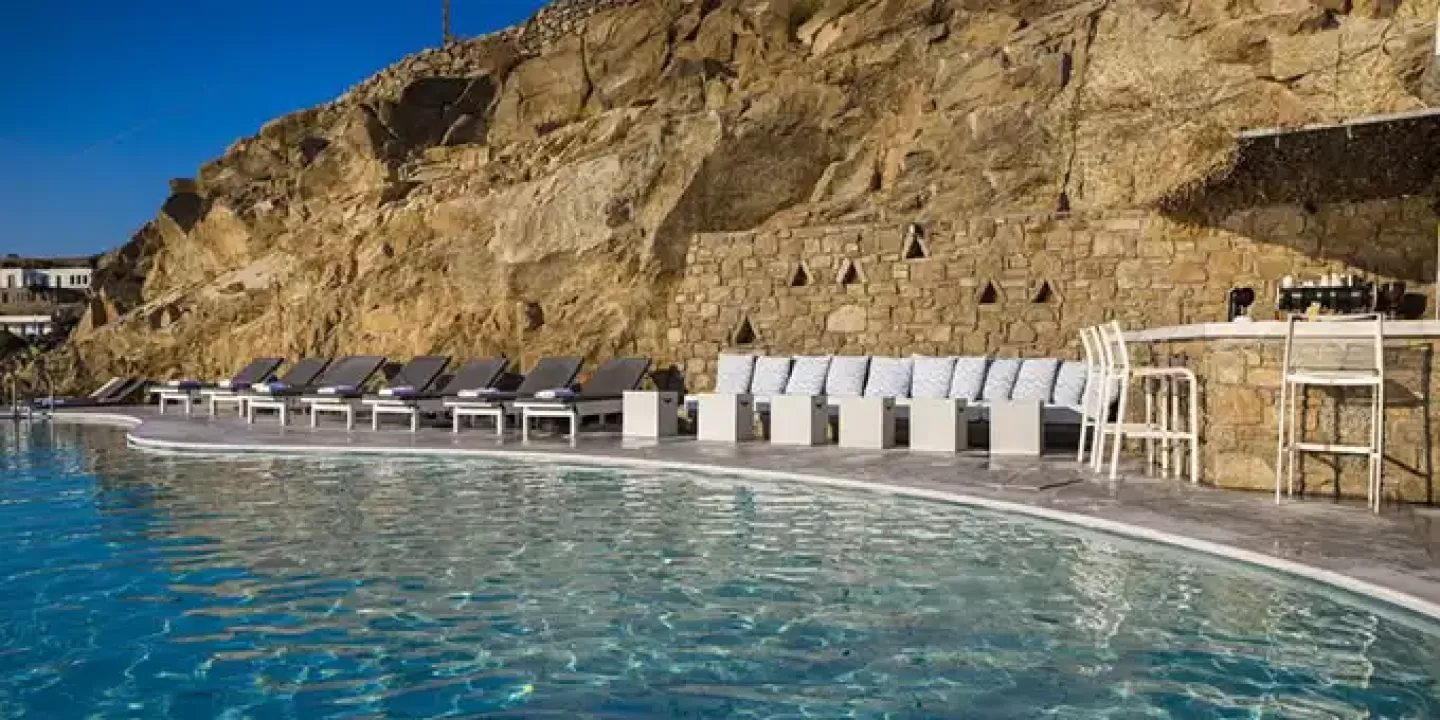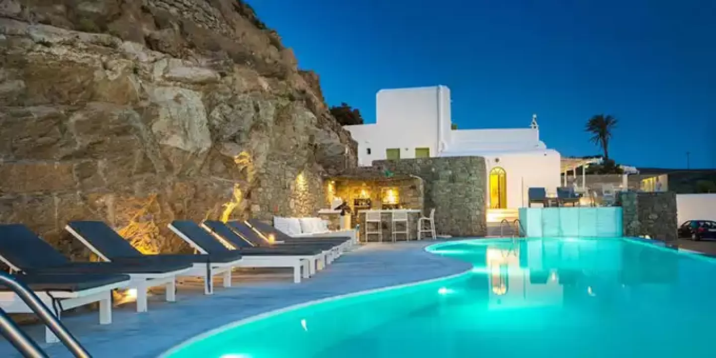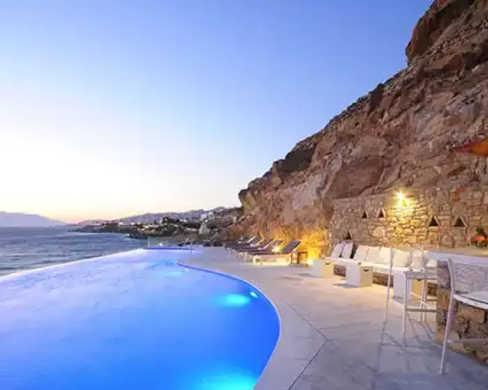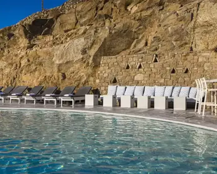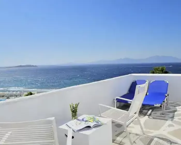 Hotel Mykonos Beach Megali Amos Beach Mikonos se nalazi iznad Megali Amos plaže, od centra glavnog grada Mikonosa udaljen oko 700 metara. Hotel je izgradjen 1975. godine, od kada je pod porodičnom upravom. Odličan izbor za lagodan odmor na odličnoj plaži, daleko od vreve glavnog grada, a opet dovoljno blizu.