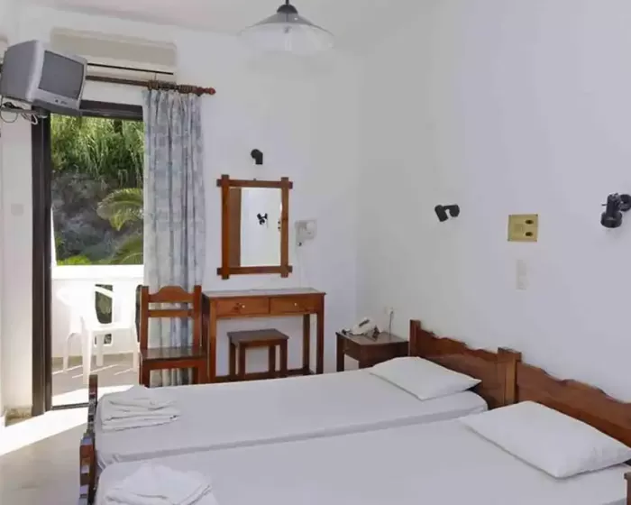 Hotel Myrtis Plakias se nalazi na južnoj obali ostrva, u živopisnom ribarskom selu Plakias, 35 kilometara od Retimna, 75 kilometara od medjunarodnog aerodroma Nikos Kazantzakis Heraklion. Manji ekonomičan hotel sa prijatnim okruženjem, jednostavnog stila, bazen, taverna na plaži, dobra usluga. Plakias mesto je poznato po svojim dugim plažama i prekrasnom prirodom. Od plaže je udaljen oko 100 metara.