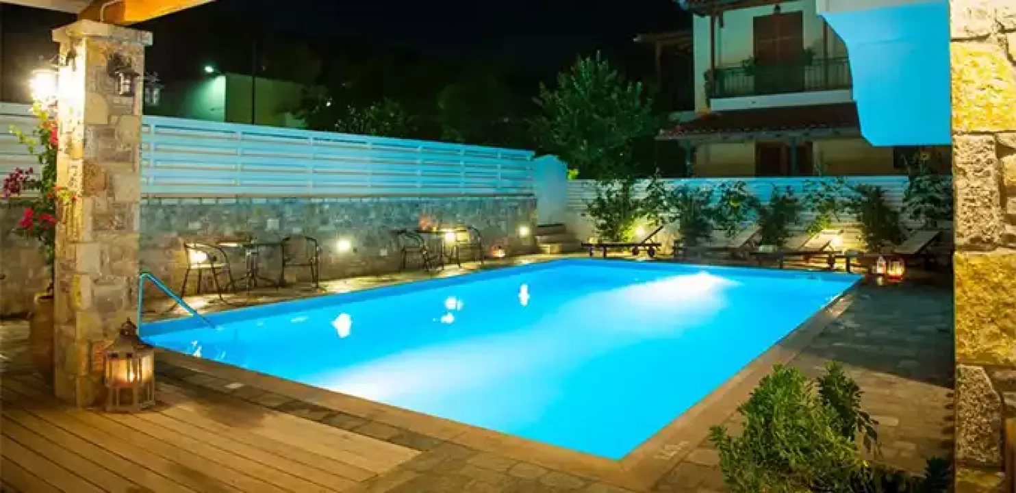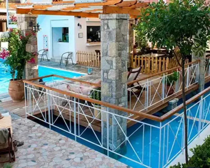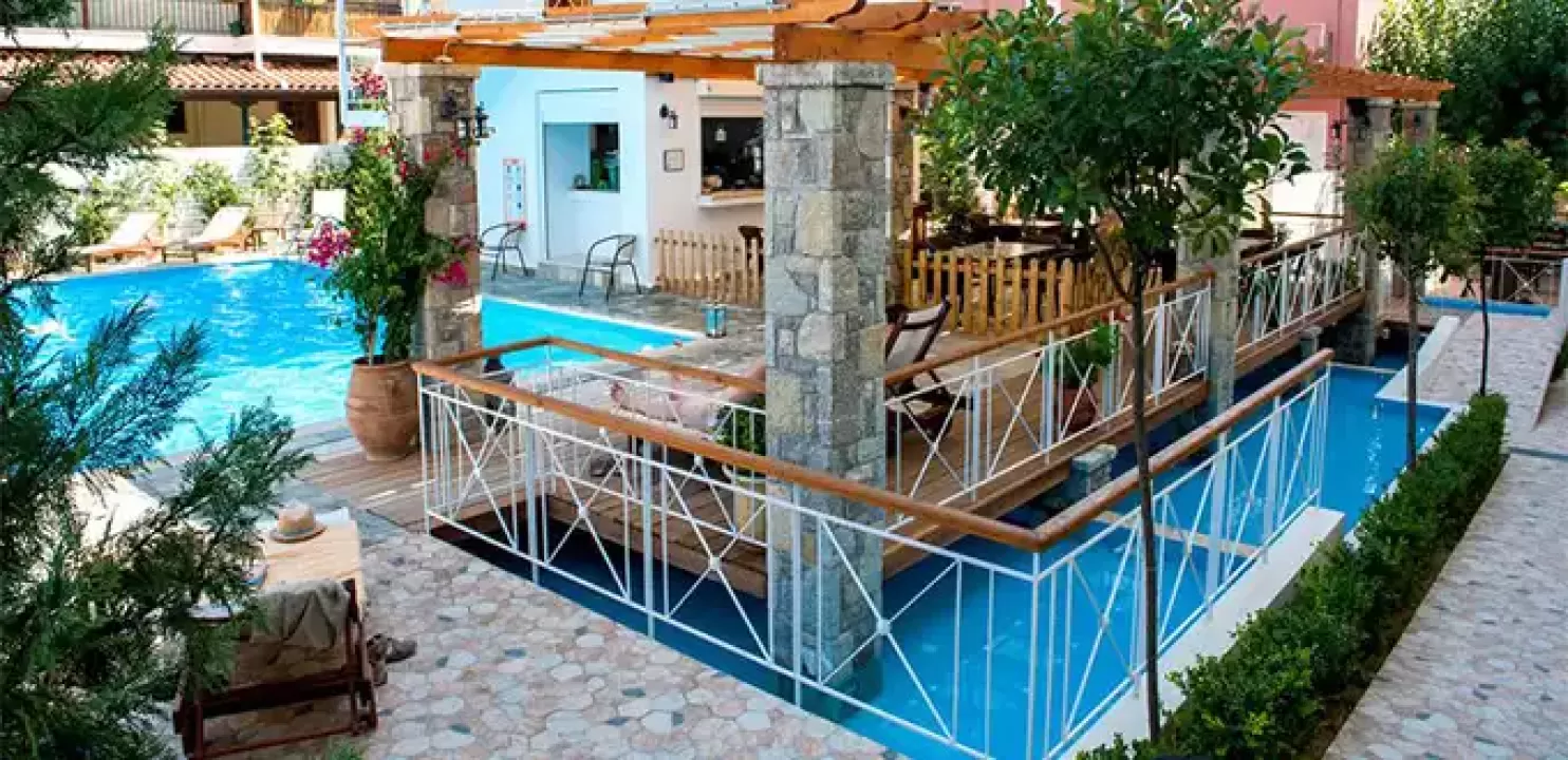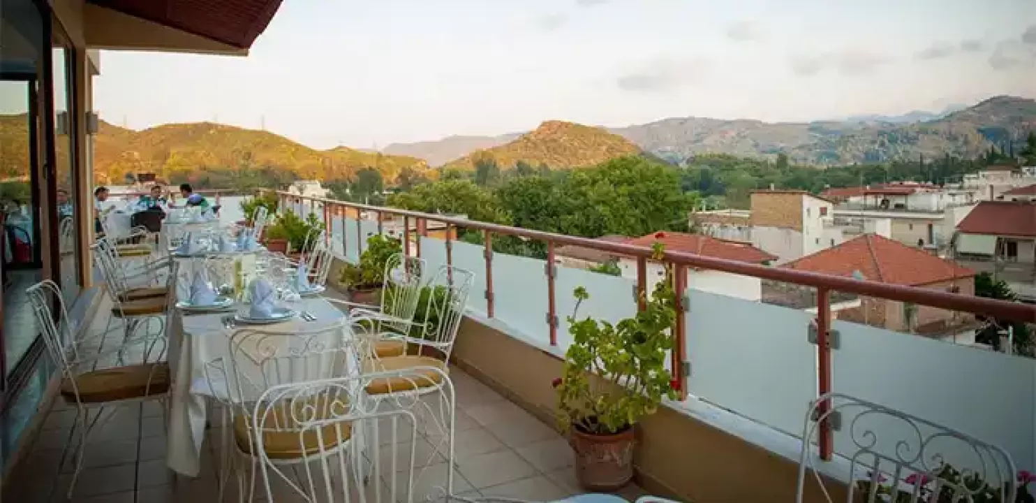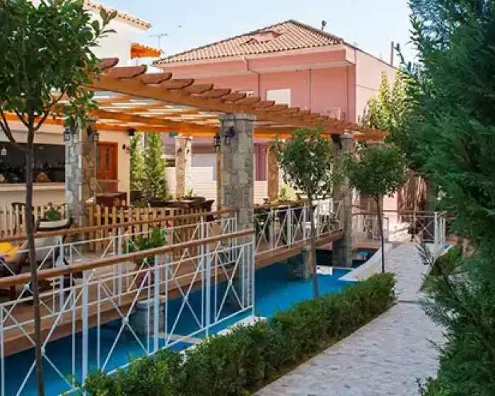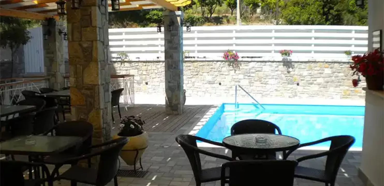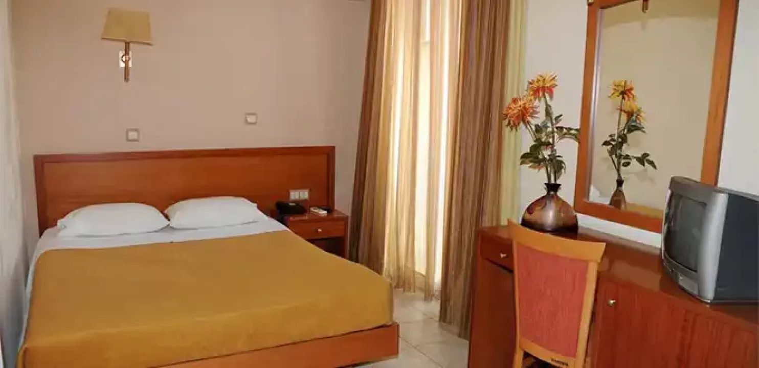 Hotel Neda se nalazi u centru grada Olimpija izmedju glavnog šetališta i šume, na oko 19 kilometara udaljenosti od grada Pirgos. Hotel ima 43 sobe. Arheološko nalazište je udaljeno oko 300 m.
