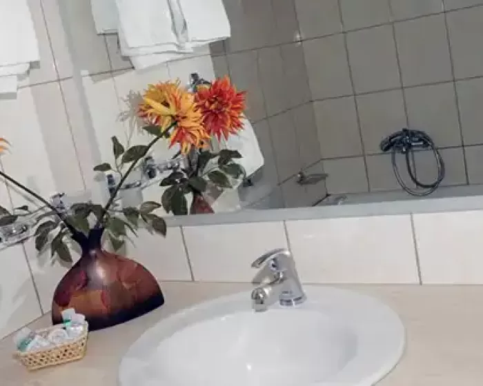 kupatilo, klima-uredjaj, TV, telefon, mini frižider, balkon sa garniturom za sedenje.