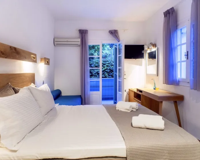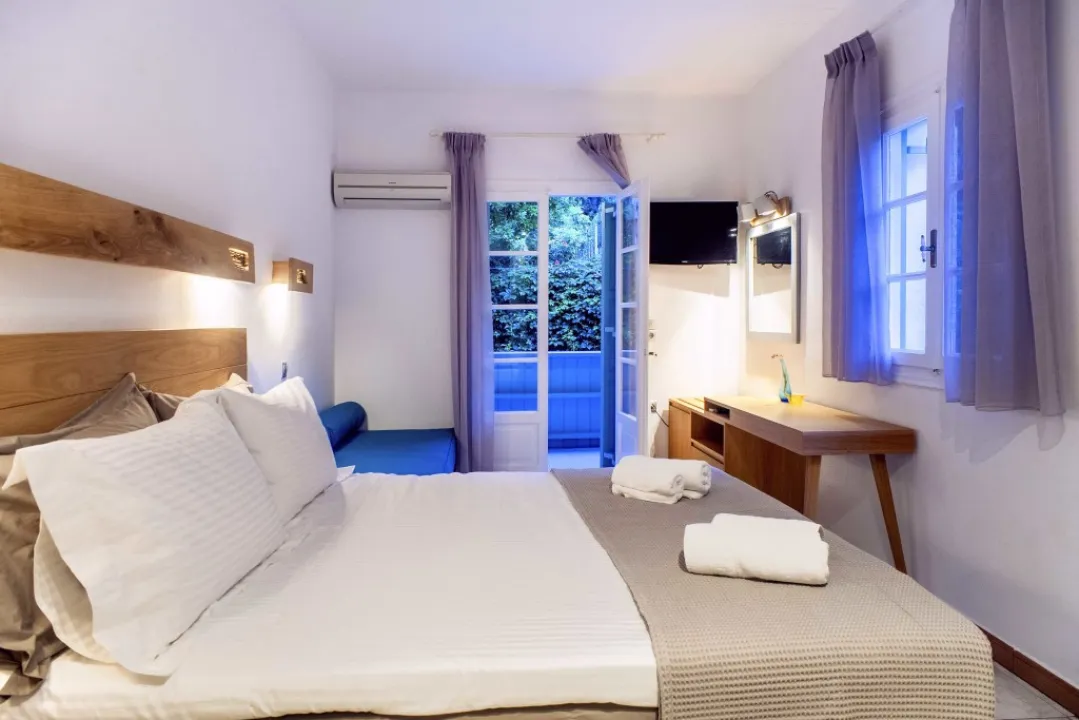 Standard soba Imaju francuski ili 2 standardna ležaja i sofu, namenjene za 2-4 osobe. Pogled bašta.