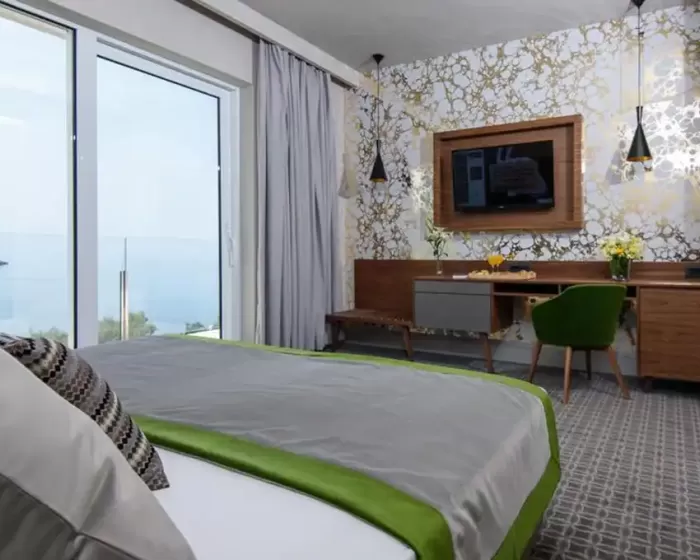 Ukupno soba: Standard soba (Dvokrevetne sobe, ~22 m²), sobe koje nemaju pogled more nemaju ni balkone.U sobama: klima, televizor, mini frižider, tuš, fen (na upit, na recepciji), balkon.
